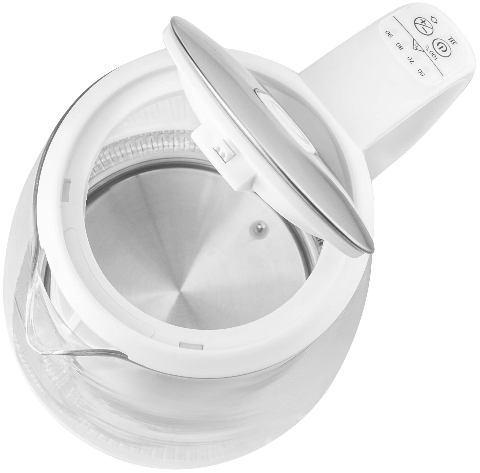 Функция поддержания температуры. Нагрев воды до выбранной температуры: 50-100 град. C. Фильтр для отделения грязи и осадка. Двусторонний индикатор уровня воды. Хранение шнура питания в подставке. Внутренняя светодиодная подсветка. Подходит также для пользователей с нарушениями слуха (светящийся индикатор работы). Нагревающееся дно из нержавеющей стали с закрытой нагревательной спиралью. Простой механизм открытия крышки нажатием кнопки.