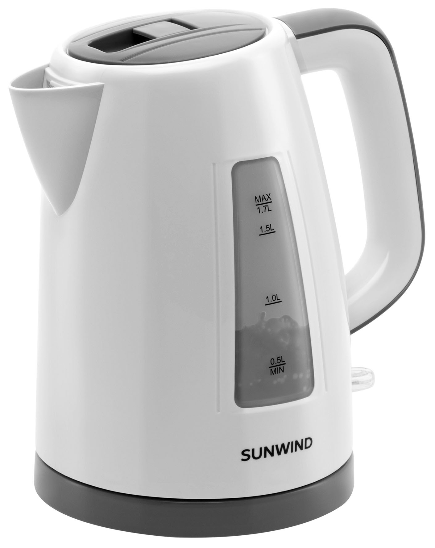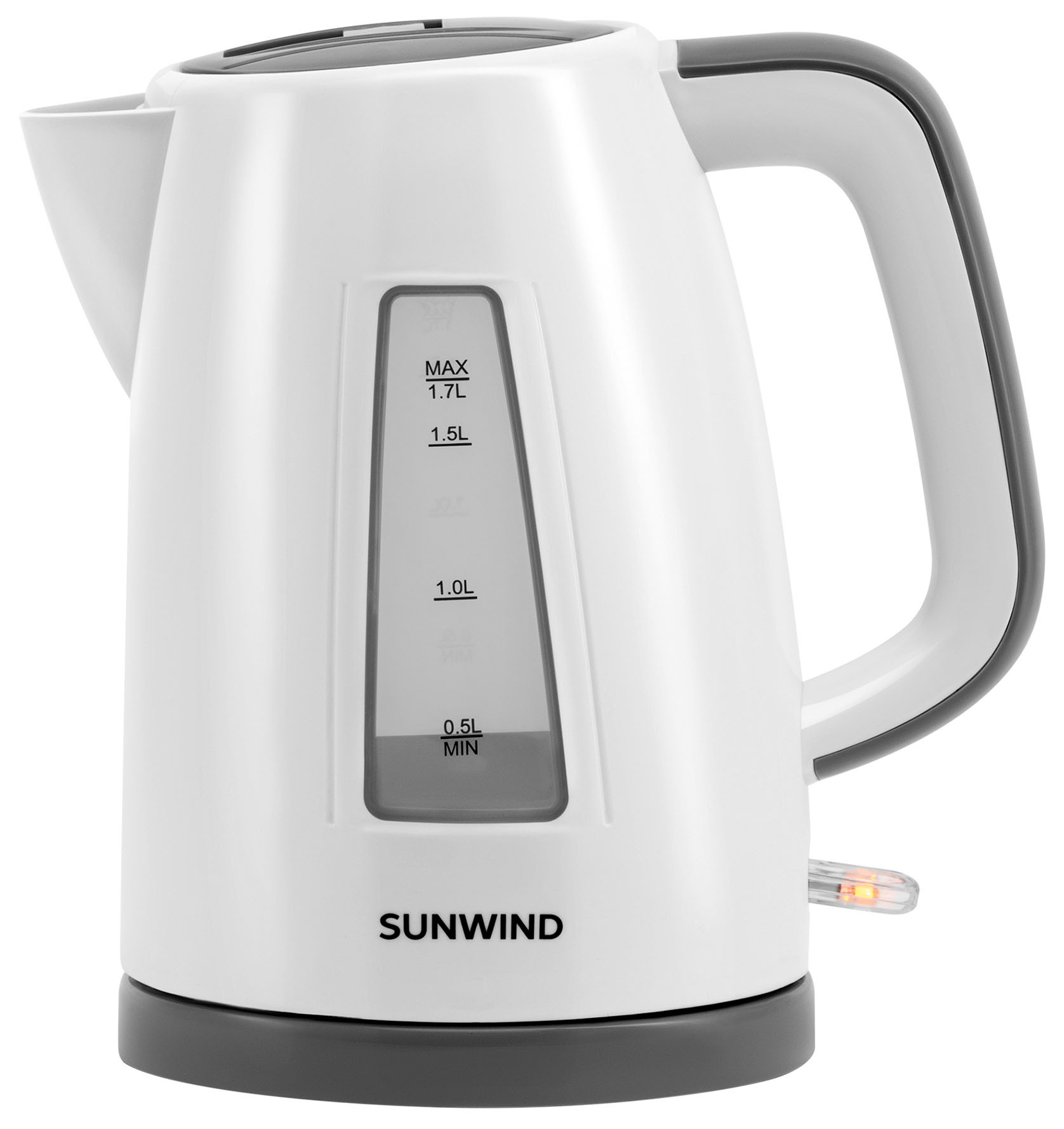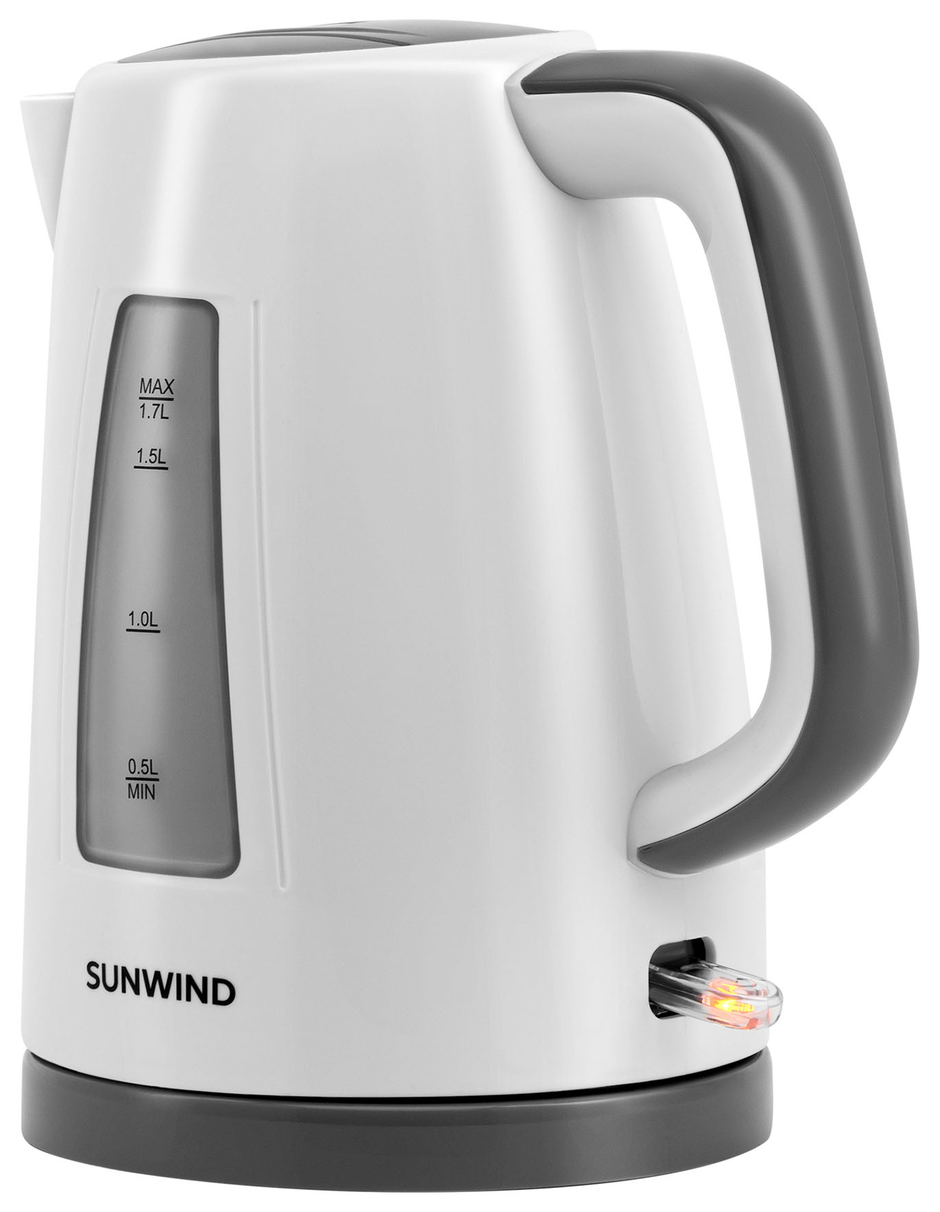 Электрочайник Sunwind SUN-K-30 за считанные минуты кипятит питьевую воду в колбе, рассчитанной на 1,7 литра. Это происходит благодаря максимальной мощности скрытого нагревательного элемента, равной 2200 Ватт. Белые поверхности пластмассового корпуса удачно дополняются серыми элементами: легко открывающейся верхней крышкой, окантовкой смотрового окна и комфортной формы ручки, подставки, контактная группа которой позволяет вращать чайник на все 360 градусов для выбора оптимального положения. Безопасности эксплуатирования способствуют автоматическое отключение при закипании, а также защита от случайного включения без воды. Предусмотрен фильтр, препятствующий попаданию накипи в наполняемые кипятком чашки. Имеется индикатор включения.