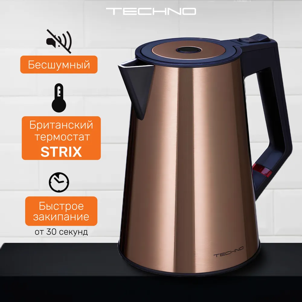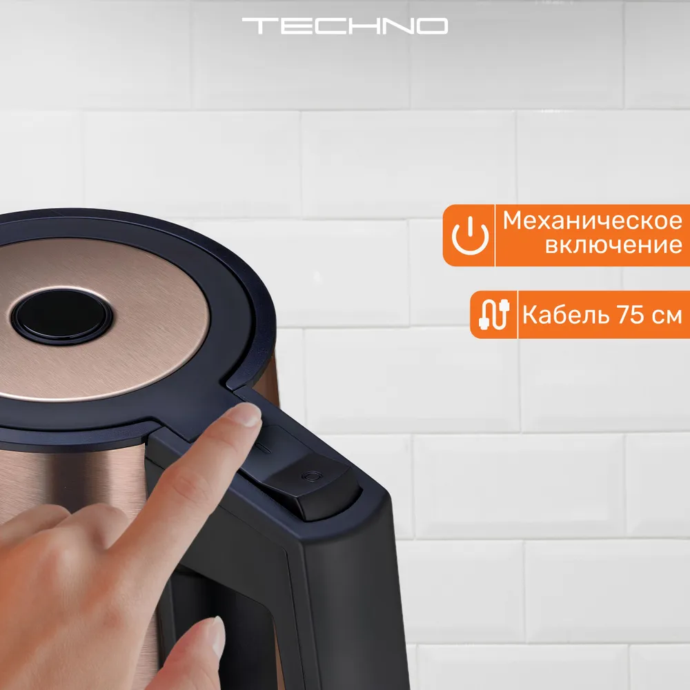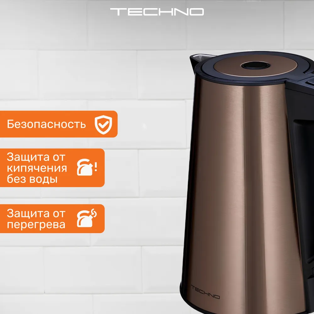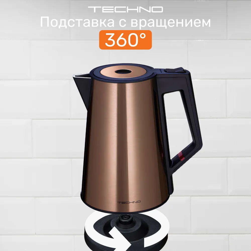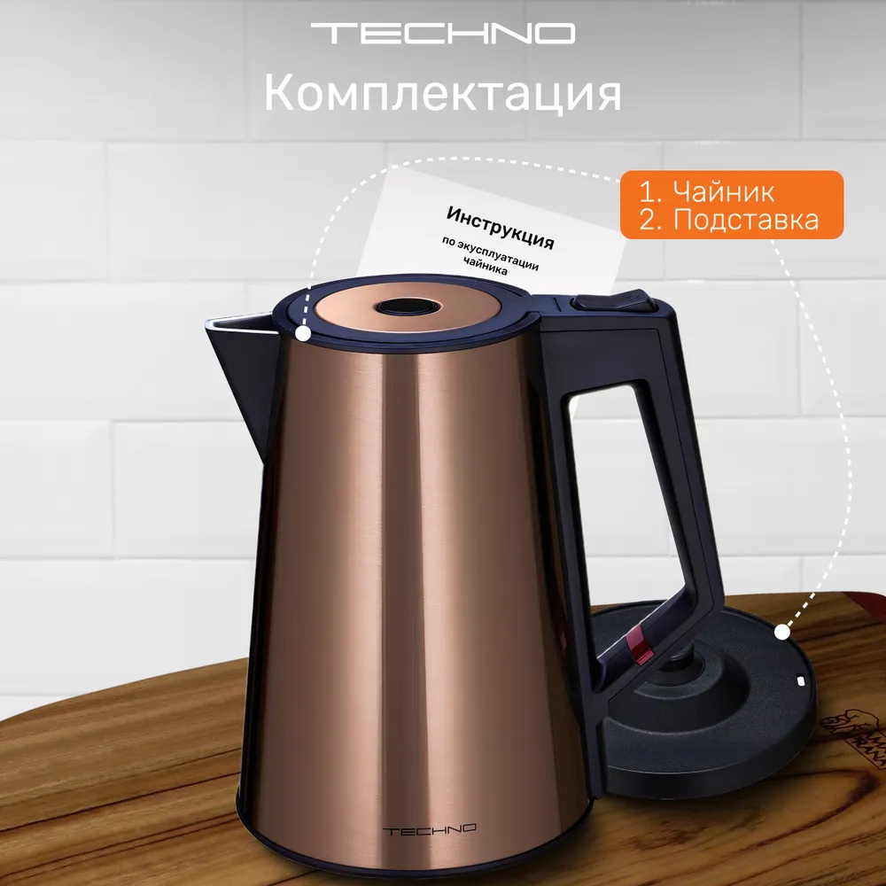 Конструкция чайника: Вращение подставки на 360°, Двухслойный корпус, Индикатор уровня воды, Отсек для шнура, Противокапельная система, Фильтр от накипи