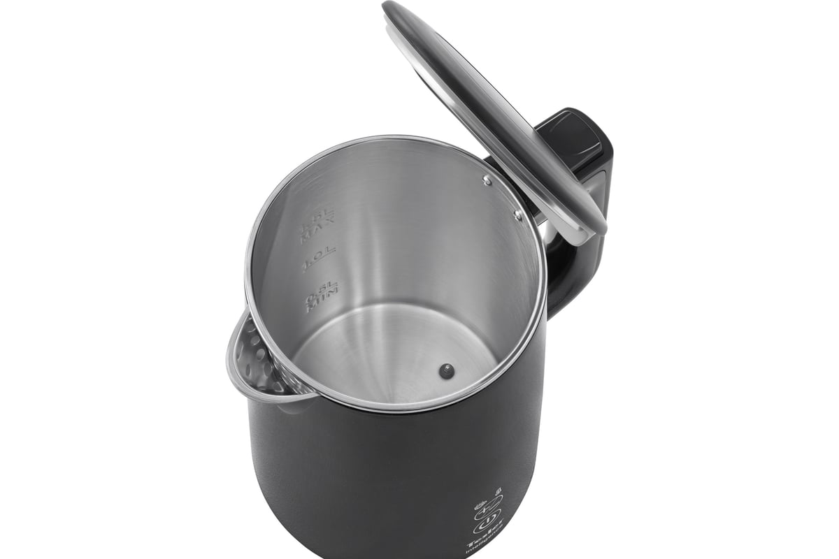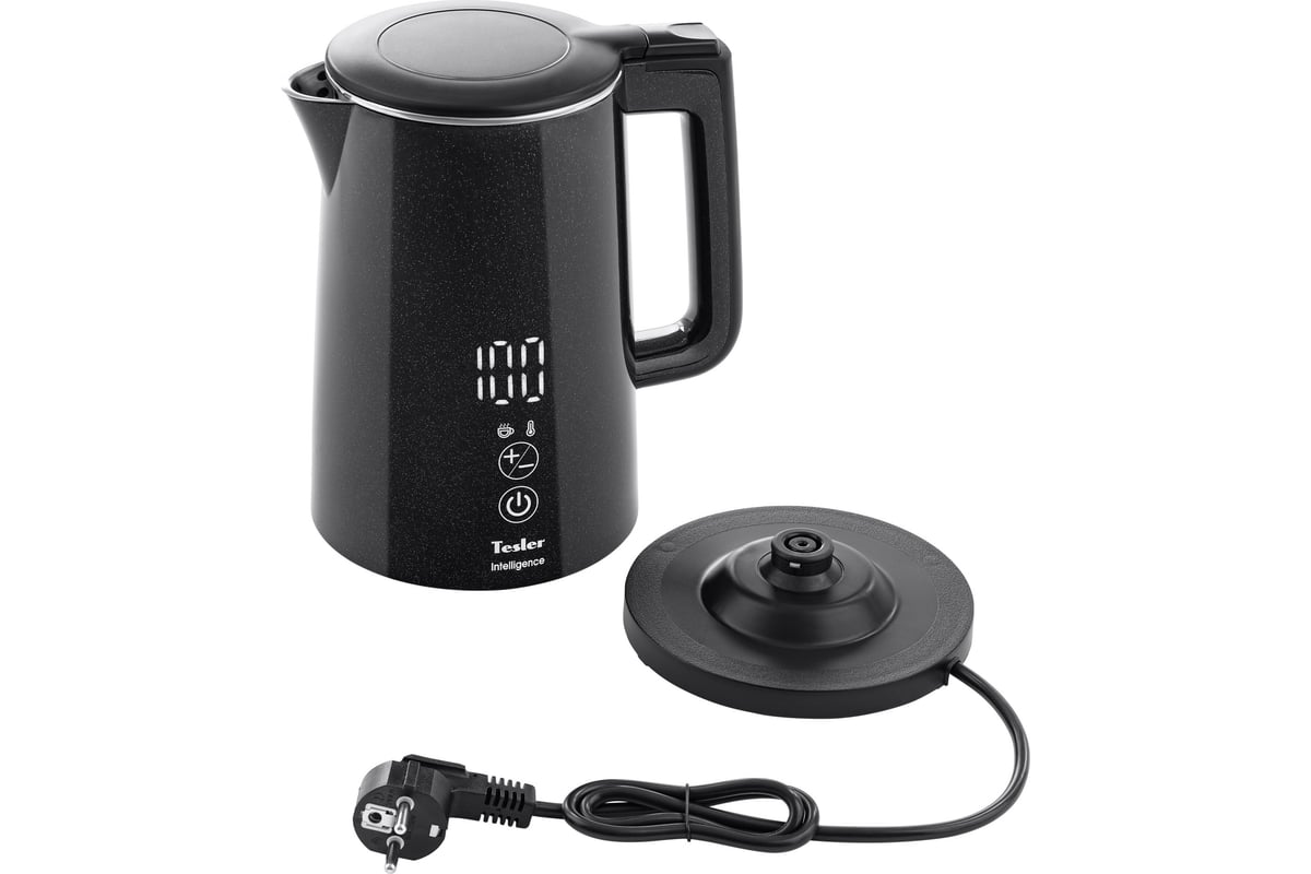 Электрический чайник Tesler KT-1520 не только кипятит воду, но и нагревает её до одного из шести предустановленных значений (40, 50, 60, 70, 80, 90 градусов). Выбранная температура поддерживается в течение 2 часов.