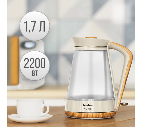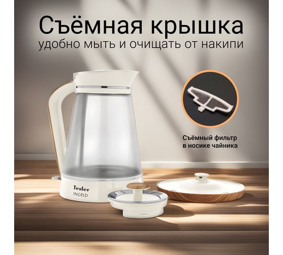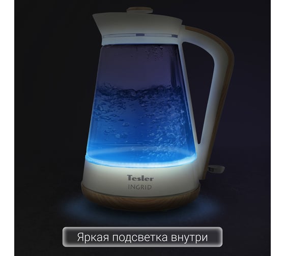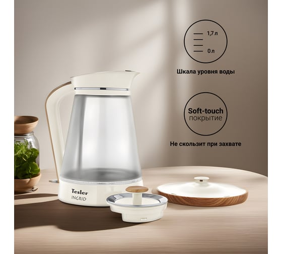Чайник Tesler INGRID KT-1750 изготовлен из высококачественных материалов: нержавеющей стали, стекла и декоративного пластика