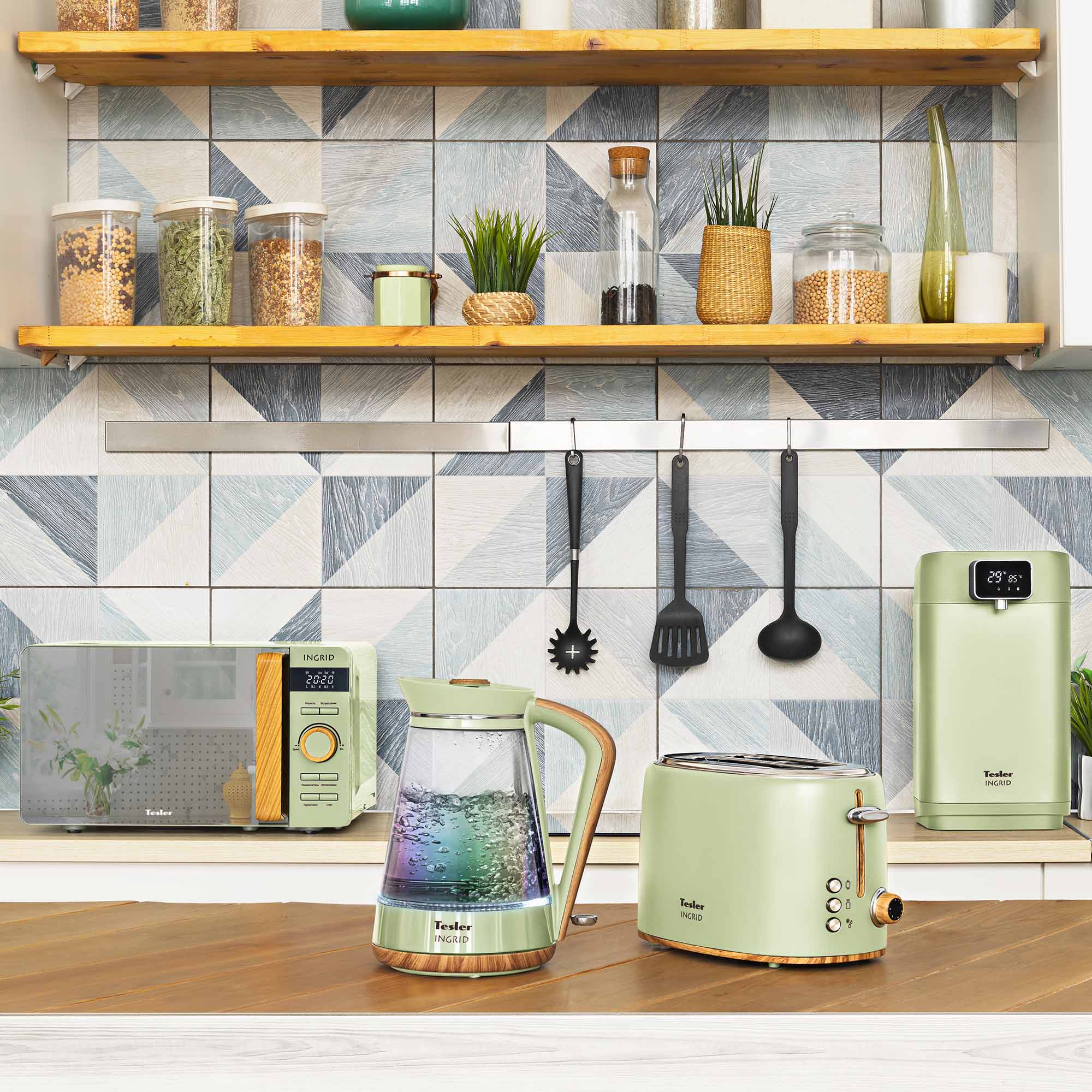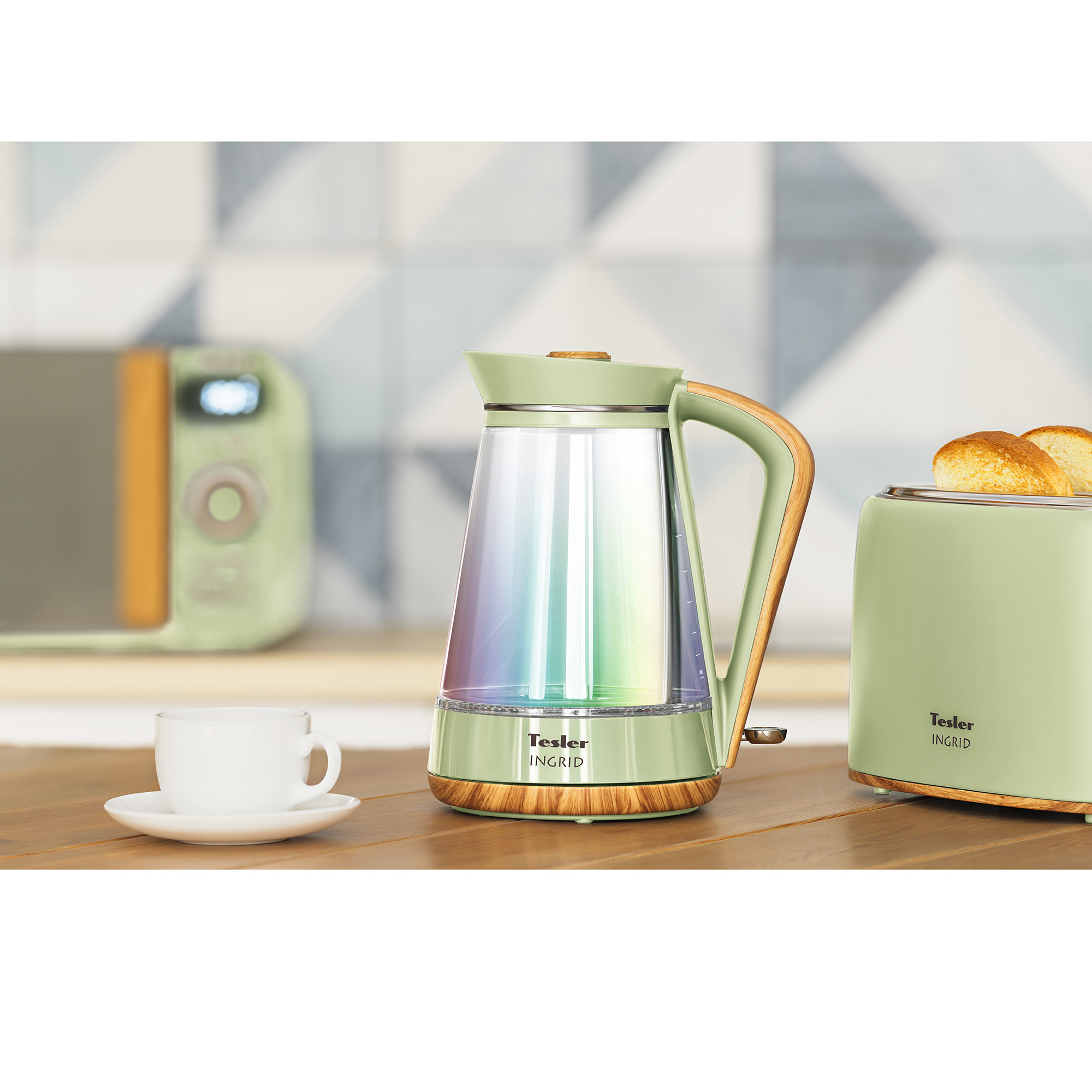 Электрочайник Tesler KT-1750 является частью коллекции INGRID, которая черпает вдохновение из скандинавского стиля, воплощая идею домашнего комфорта минималистичностью форм и спокойной цветовой гаммой.