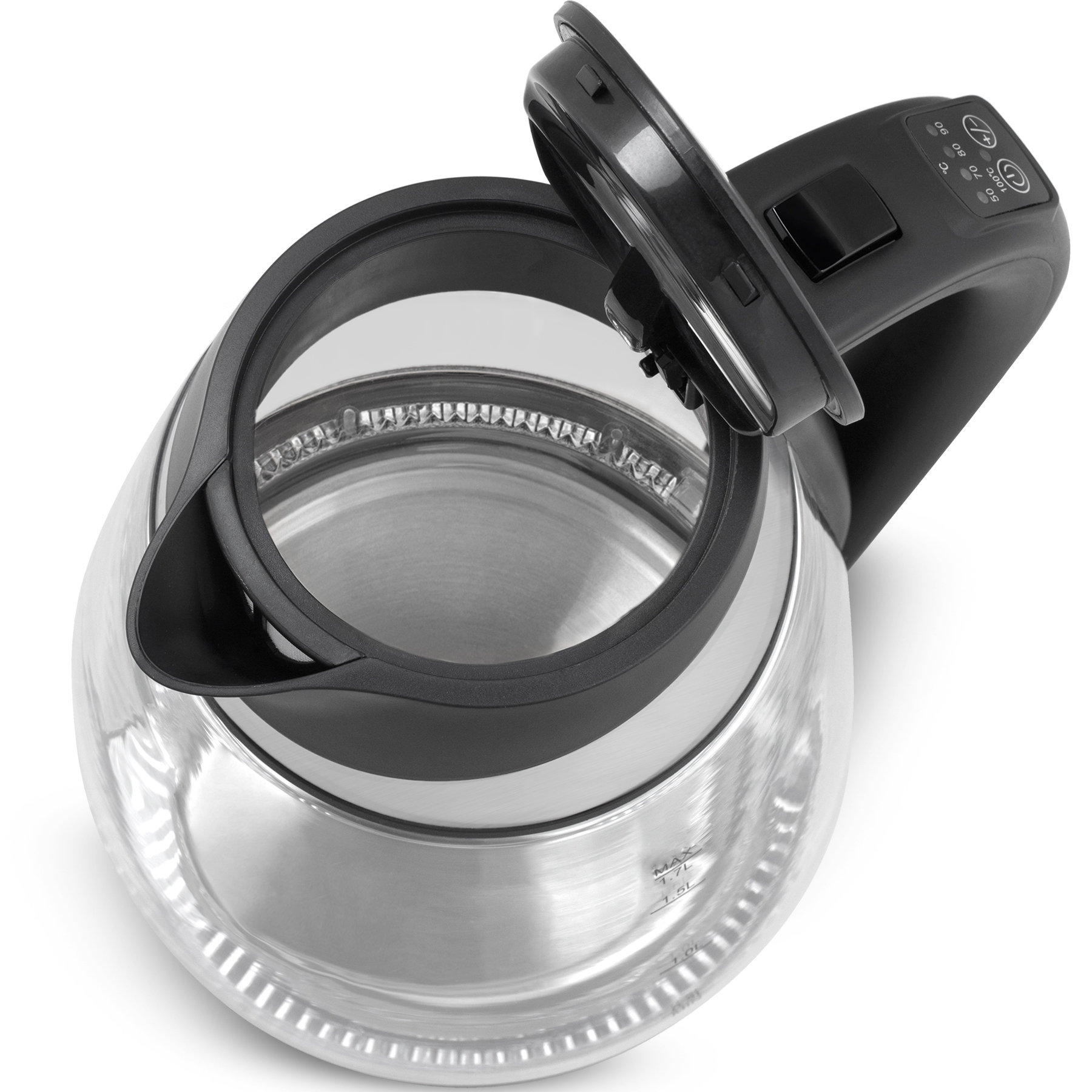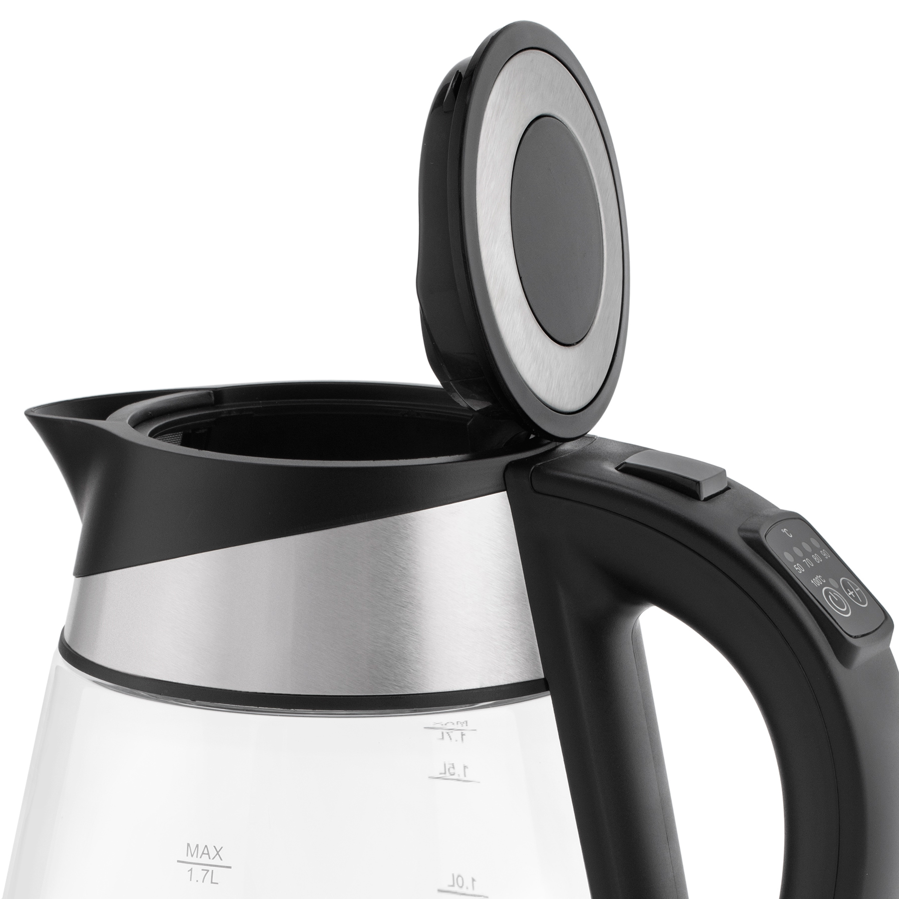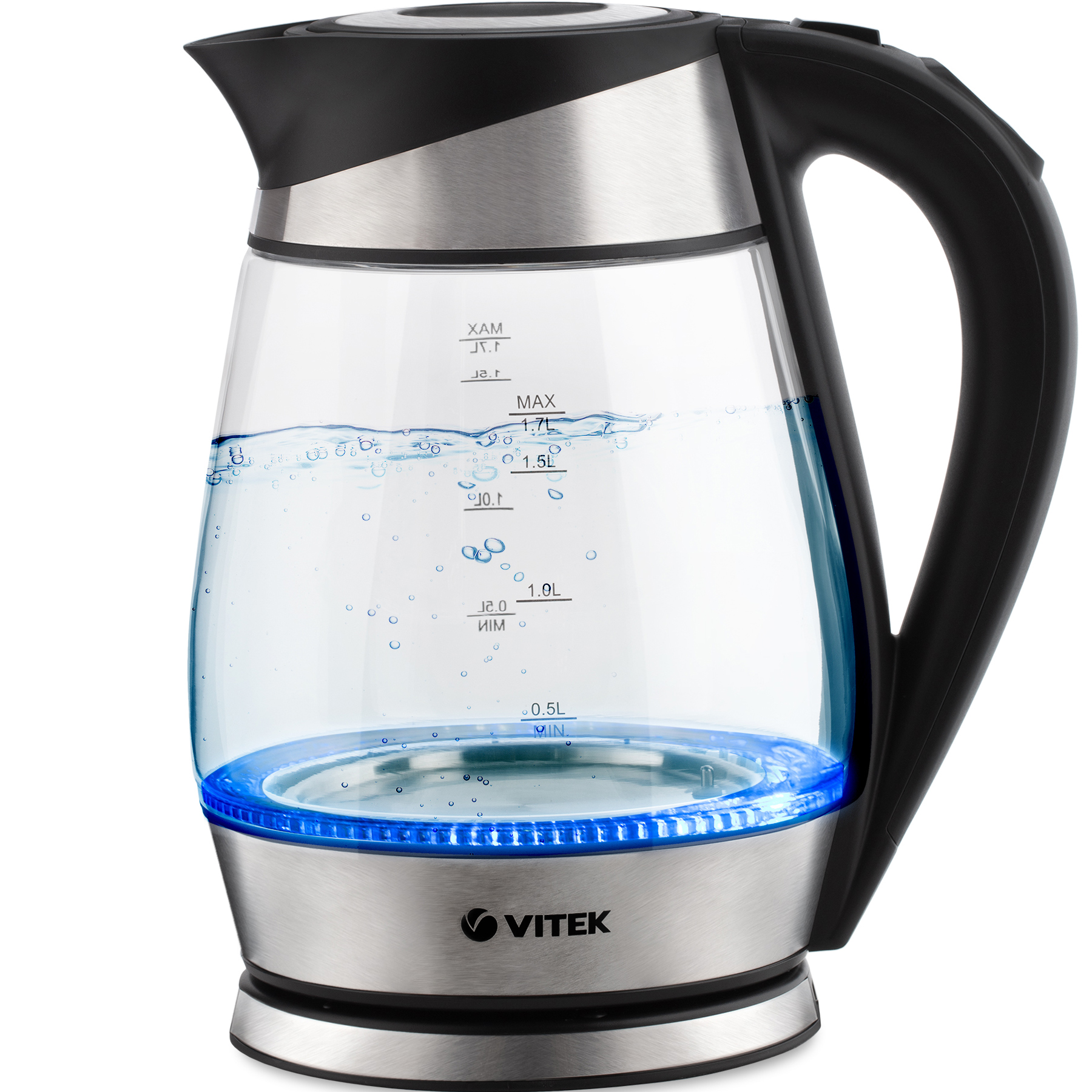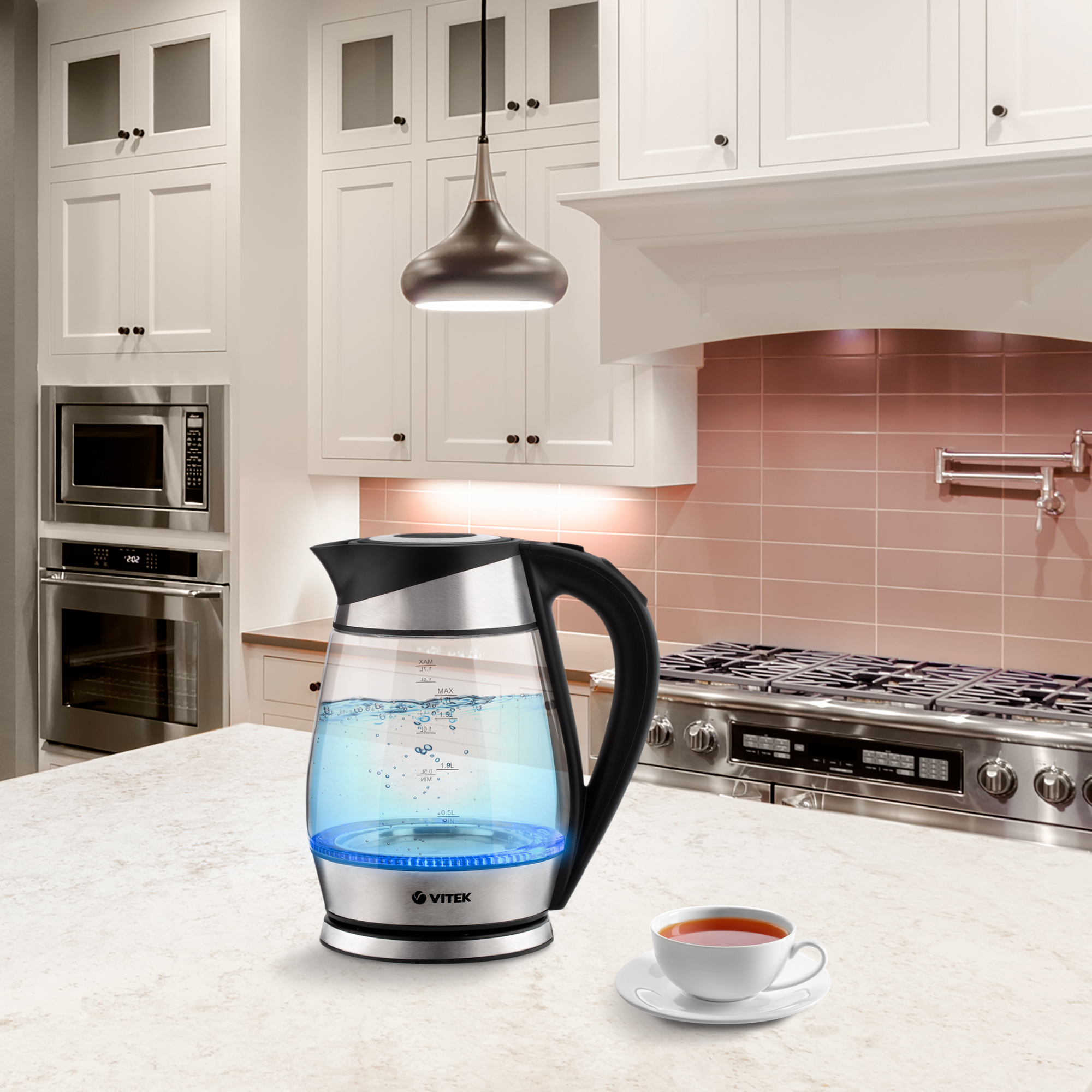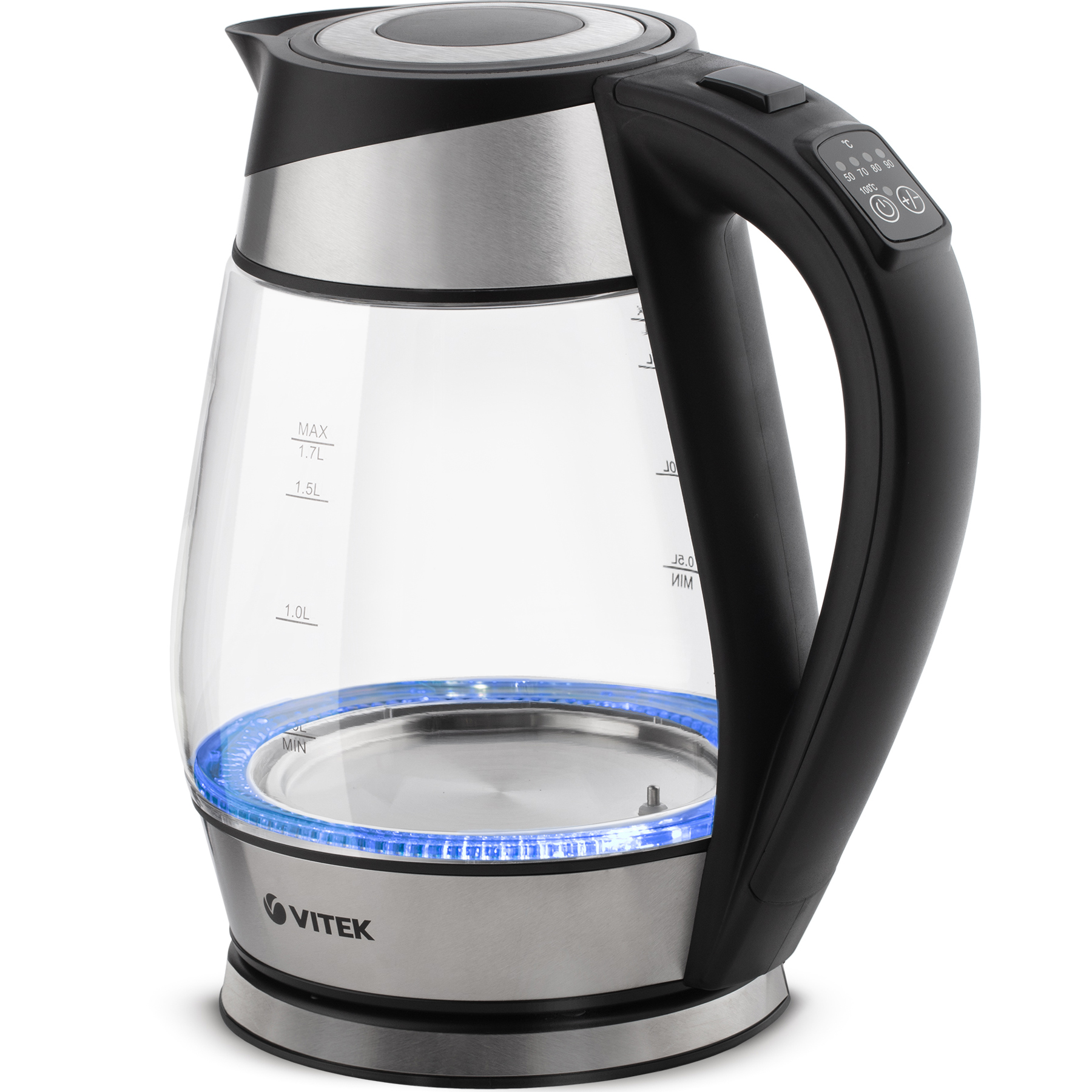 Кипятить воду, одновременно получая эстетическое удовольствие, позволит чайник VITEK VT-1177 объемом 1,7 л с максимальной мощностью 2200 Вт. Его корпус из экологического термостойкого стекла, декорированный стальными элементами, имеет красивую подсветку, меняющуюся в процессе нагревания. Вы можете выбрать один из пяти режимов подогрева воды (50 °С, 70 °С, 80 °С, 90 °С, 100°С), идеально подходящих для заваривания разных сортов чая, а также воспользоваться функцией поддержания температуры. Благодаря тому, что нагревательный элемент встроен в плоское дно прибора, его легко очищать от накипи. Пользоваться чайником очень удобно: он автоматически открывается легким нажатием на кнопку, расположенную на ручке.