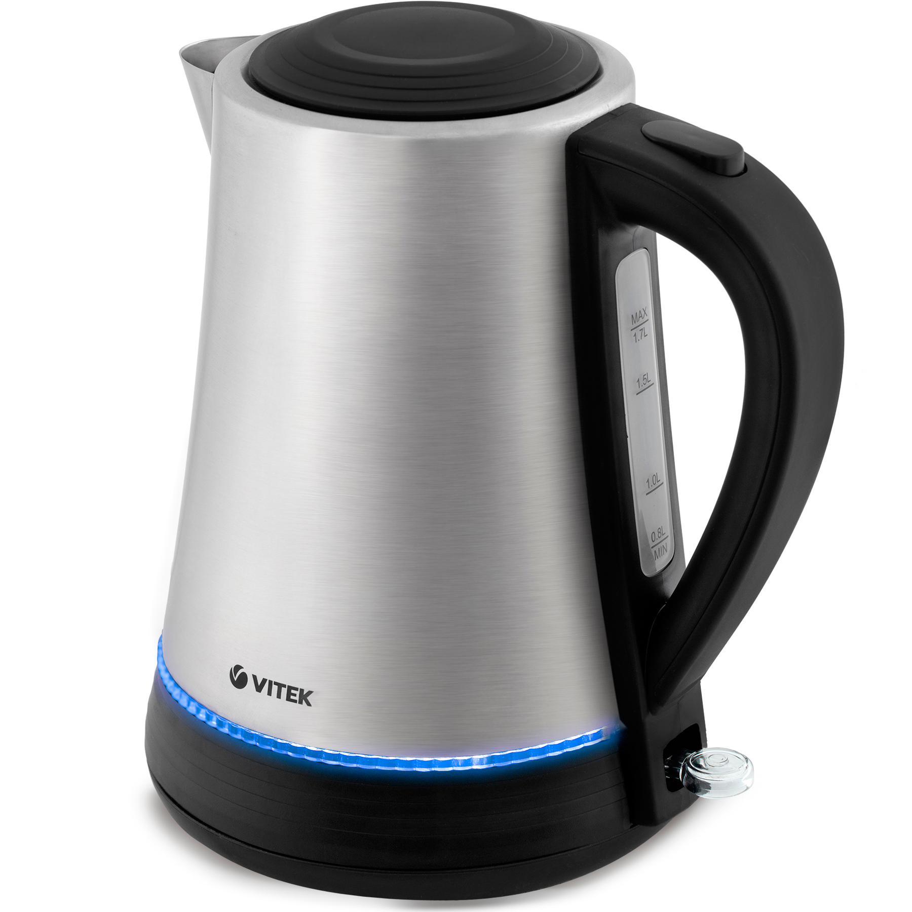 Долговечный, надежный, стильный… Все это — о чайнике VITEK VT-7062 объемом 1,7 л, изготовленном из высококачественной нержавеющей стали. Благодаря сертифицированному английскому контроллеру STRIX, прибор будет работать в 5 раз дольше обычного. Чайник имеет красивую голубую подсветку на корпусе, которая гармонично сочетается с его благородным серебристым цветом. Крышка устройства открывается автоматически — нажатием кнопки на ручке.