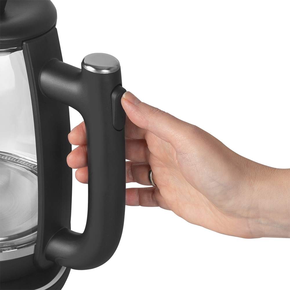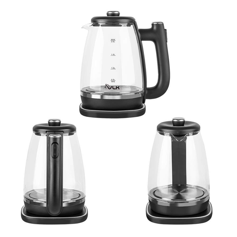 Беспроводное соединение позволяет вращать чайник на подставке на 360 градусов, Корпус из высококачественного стекла, Светодиодная подсветка корпуса, Автоотключение при закипании воды, Автоотключение при отсутствии воды, Шкала уровня воды, Защита от перегрева, Скрытый нагревательный элемент, Фильтр-сетка для защиты от накипи, Эргономичная ненагревающаяся ручка