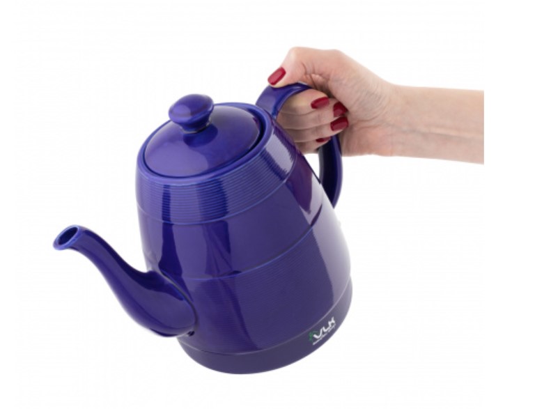Корпус из эко-керамики сохраняет полезные свойства воды, Беспроводное соединение позволяет вращать чайник на подставке на 360°, Дисковый нагревательный элемент, Автоотключение при закипании и отсутствии воды, Эргономичная ненагревающаяся ручка, Удобный носик для розлива воды, Встроенный несъемный крупноячеистый фильтр для сбора накипи