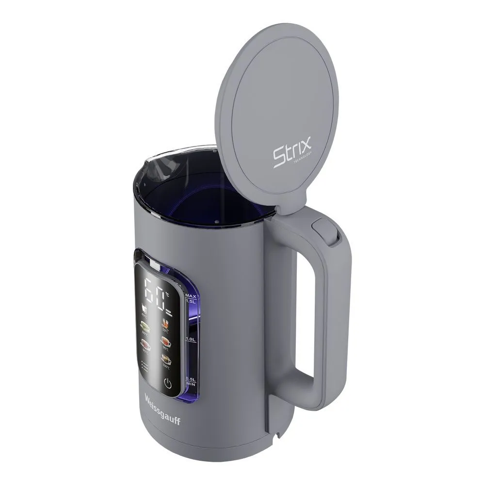 Конструкция чайника: Двухслойный корпус, Дисплей, Светоиндикатор работы, Вращение подставки на 360°, Отсек для шнура