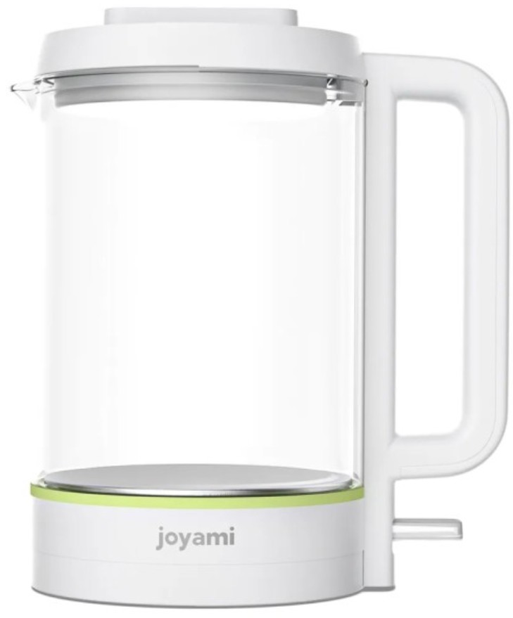 Чайник Joyami Electric Kettle 1,5л JDS010 EU электрочайник с объемом 1,5 литра. Корпус чайника изготовлен из 100% боросиликатного стекла, что обеспечивает безопасность и сохраняет качество воды. Дополнительная безопасность обеспечивается материалом из пищевой нержавеющей стали 304. Чайник быстро нагревает воду благодаря мощности 1500 Вт и автоматически отключается при вскипании. Крышка полностью съемная, а широкое горлышко и удобная ручка обеспечивают простую и удобную чистку и использование. Также чайник оснащен LED-подсветкой кнопки и имеет удобную систему сматывания кабеля в подставке. Можно просто наслаждаться удобством и красотой современных технологий.