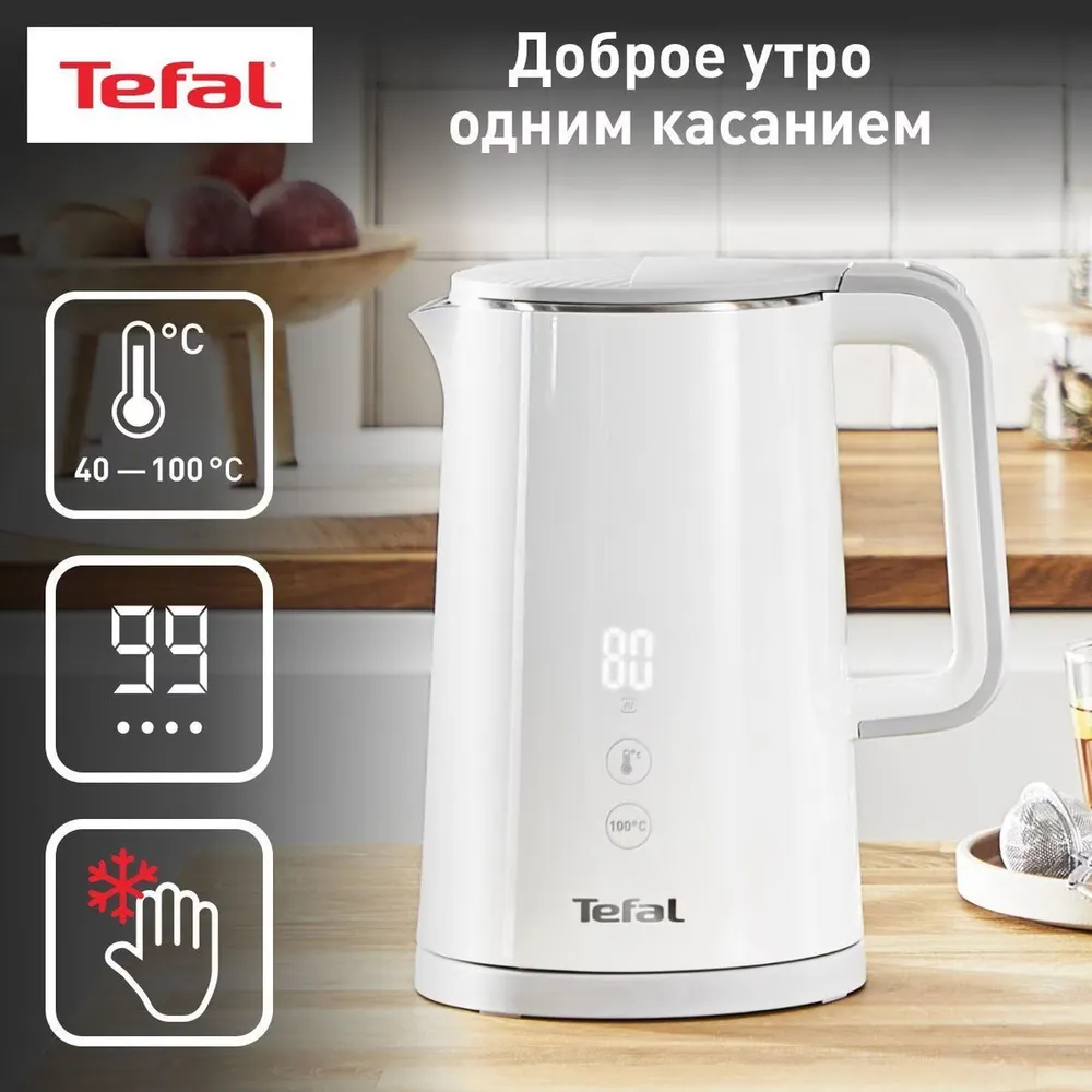 Конструкция чайника: Дисплей, Индикатор уровня воды, Светоиндикатор работы, Фильтр от накипи, Бесшумный