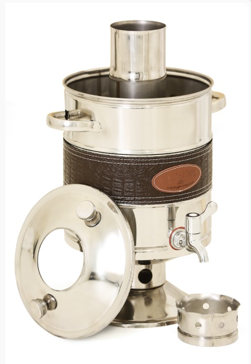 Недорогой и практичный самовар классической конструкции сделан из нержавеющей стали, лёгкий, прочный, станет незаменимым помощником на даче или в доме.