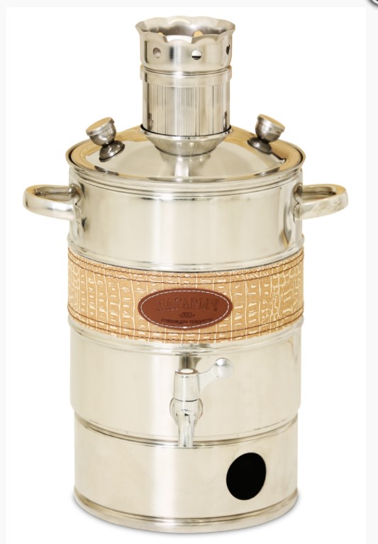 Дровяной самовар Магарыч Турецкий 8л. Самовары пришли в Турцию с русскими солдатами, турки по достоинству оценили "Чайную машину" и, немного изменив конструкцию, оставили себе: к трубе присоединилась топочная камера, которая находится под баком для воды.