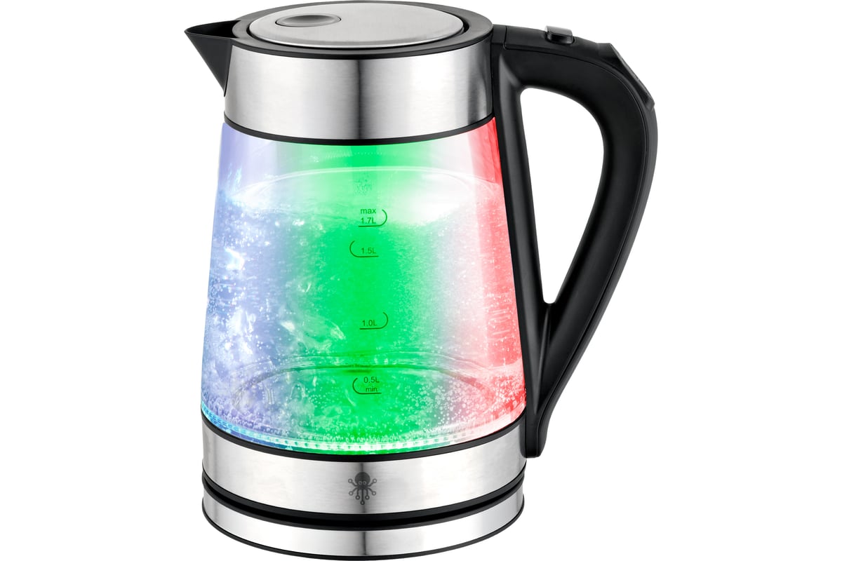 Корпус чайника выполнен из закаленного стекла, нержавеющей стали и высококачественного пластика, что является залогом долгой службы.