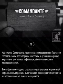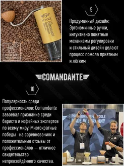 Кофемолки Comandante полностью производятся в Германии и известны среди знатоков своим легендарным качеством, лучшим на рынке ручных кофемолок с жерновами.