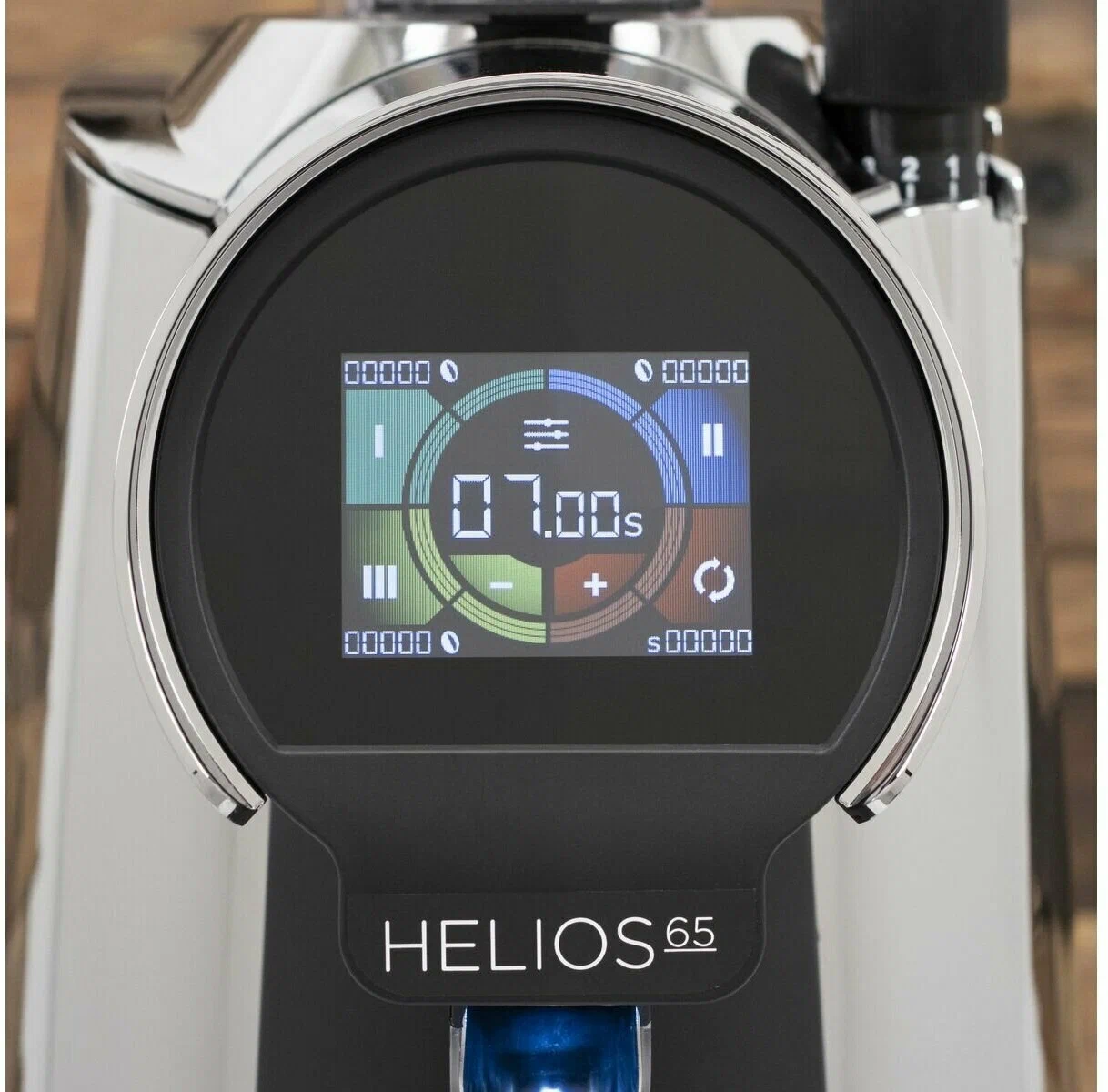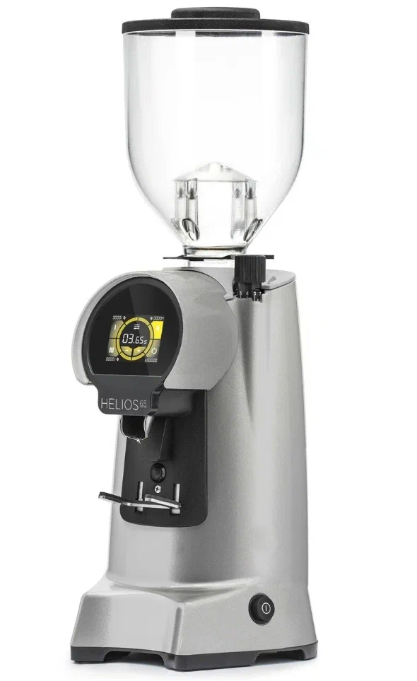 плоские жернова 65мм, высокоскоростная дисперсия помола, система бесступенчатой микрометрической регулировки помола, система ACE, универсальная регулируемая вилка "свободные руки", возможность активировать или деактивировать предварительный выбор дозы, 3 режима активации измельчения, система полного контроля, система безопасности бункера для кофейных зерен