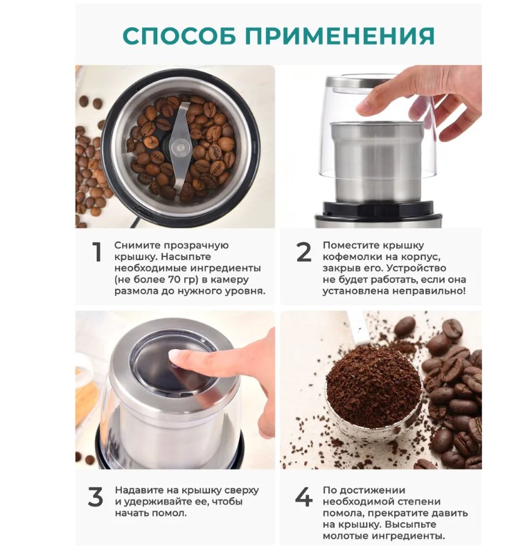 Полуавтоматическая кофемолка Gemlux GL-CG998 оснащена съемной чашей емкостью 300 мл из нержавеющей стали с 2-лопастным ножом. Запуск двигателя происходит при нажатии на крышку чаши. Устройство измельчает за один прием около 70 г зернового кофе. Степень помола (от грубого для френч-пресса до тонкого для турки) зависит от длительности работы. Время непрерывной работы ножевой кофемолки при максимальной нагрузке -до 60 секунд. Для получения наилучших результатов рекомендуется производить помол в импульсном режиме с 10-секундными интервалами. Корпус кофемолки изготовлен из нержавеющей стали с элементами из пластмассы.