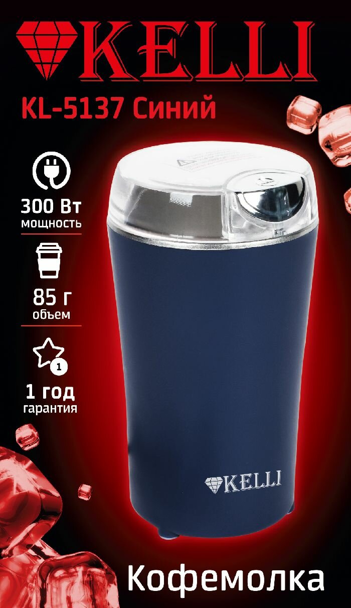 Представляем вам кофемолку от надежного бренда Kelli, модель KL-5137. Устройство обладает мощностью 300 Ватт и вместимостью 85 грамм, чего вполне достаточно для домашнего использования или небольшого офиса. Корпус кофемолки выполнен из качественного пластика, а лезвия изготовлены из нержавеющей стали для долгой и надежной службы.