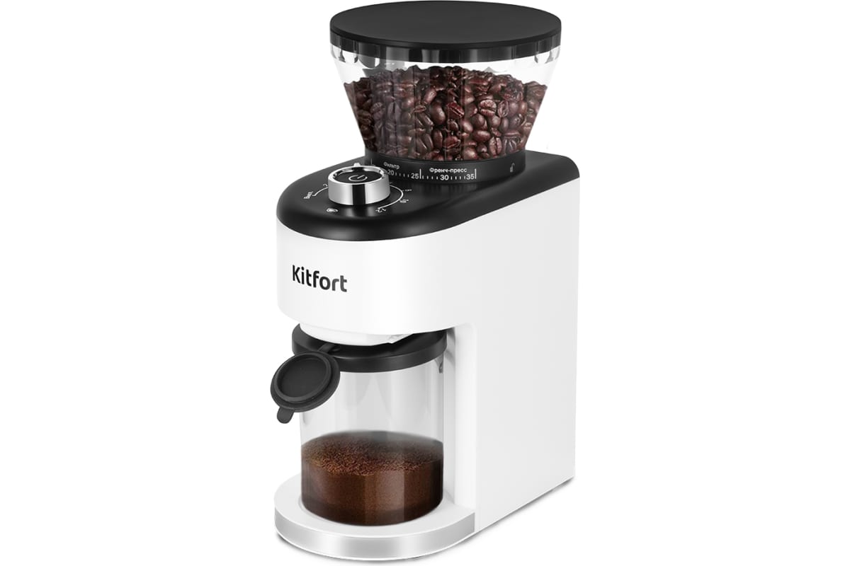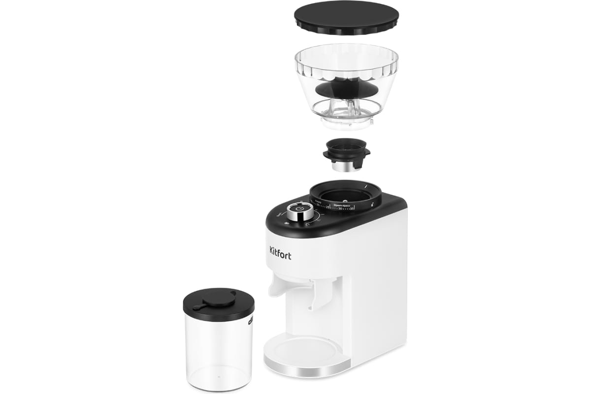 Жерновая кофемолка КТ-7205 предназначена для помола кофейных зёрен. Она оснащена коническими металлическими жерновами. Кофемолка даёт равномерный помол и позволяет настроить его степень: от мелкого - для эспрессо кофеварки, до крупного - для френч-пресса.