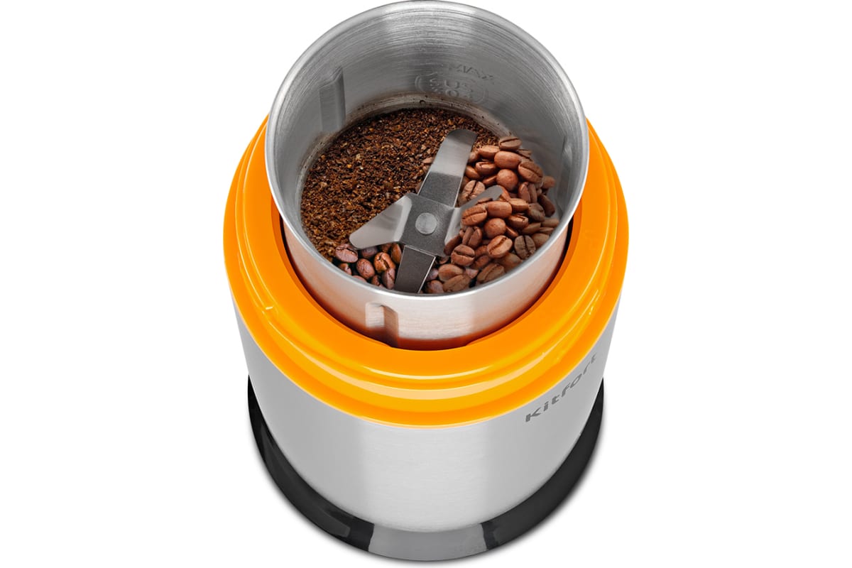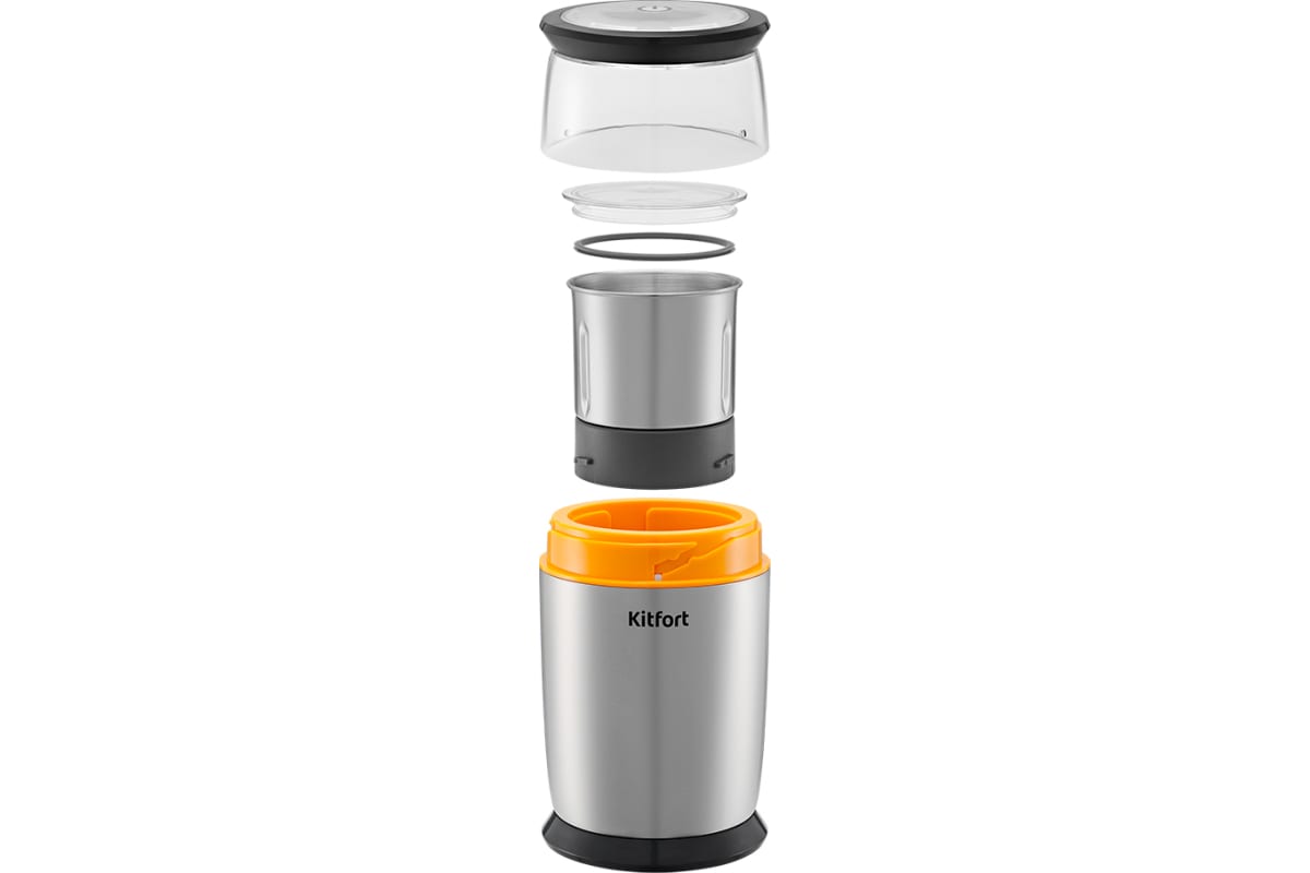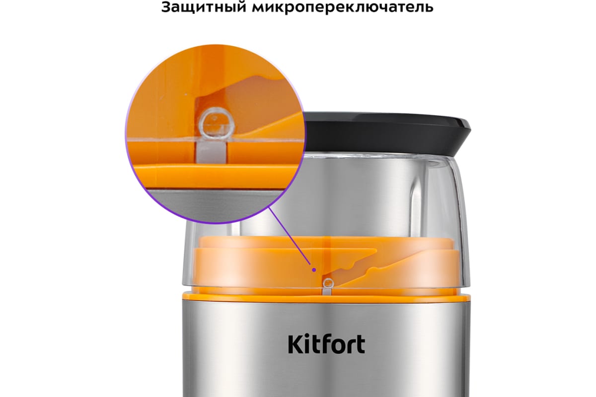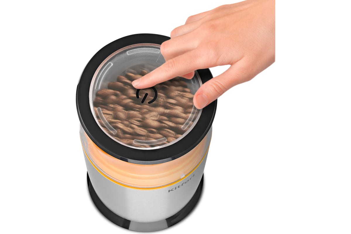 Кофемолка КТ-7243 предназначена для помола кофейных зерен и измельчения специй. В чаше установлены ножи с четырьмя лезвиями для эффективного измельчения. Ножи и чаша выполнены из нержавеющей стали. При включении кофемолки ножи быстро вращаются и рубят кофейные зерна или специи.