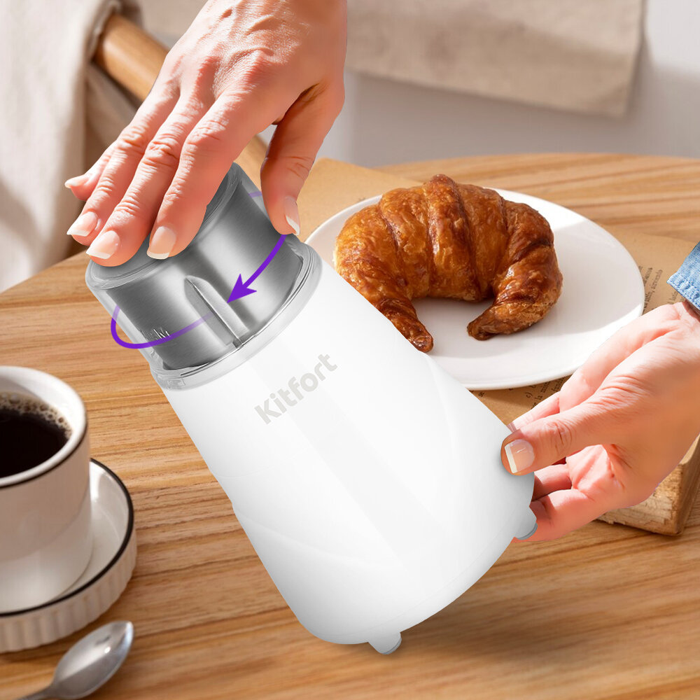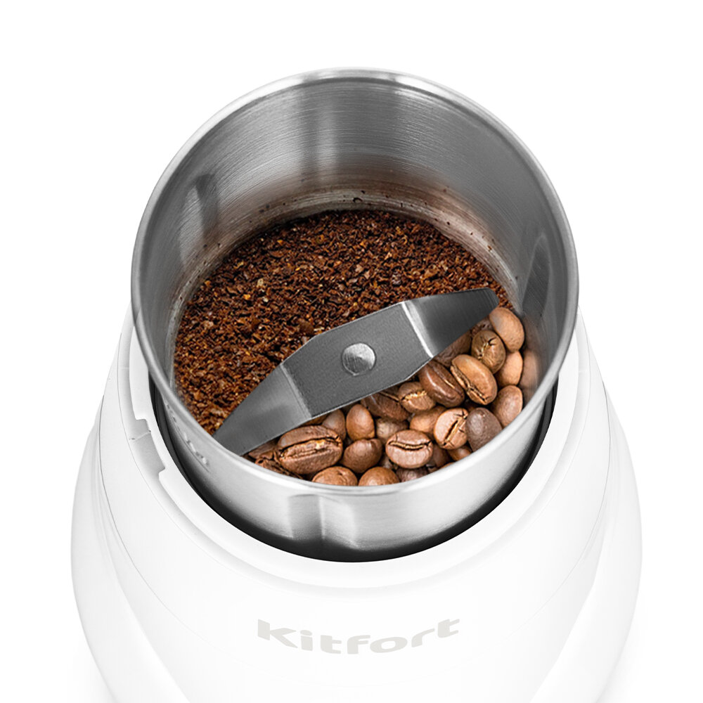 Мощная кофемолка Kitfort КТ-7482 предназначена для помола кофейных зёрен. Это не сложное в использовании устройство обязательно пригодится всем любителям кофе! А стильный и минималистичный дизайн идеально подойдёт в любой интерьере кухни.