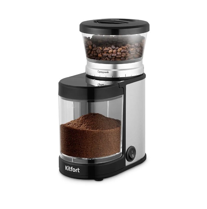 Жерновая кофемолка КТ-7565 с мощностью 150 Вт обеспечивает равномерный помол, который можно настроить от мелкого для эспрессо до грубого для френч-пресса. Жерновая система предотвращает перегрев, сохраняя насыщенный вкус кофе.