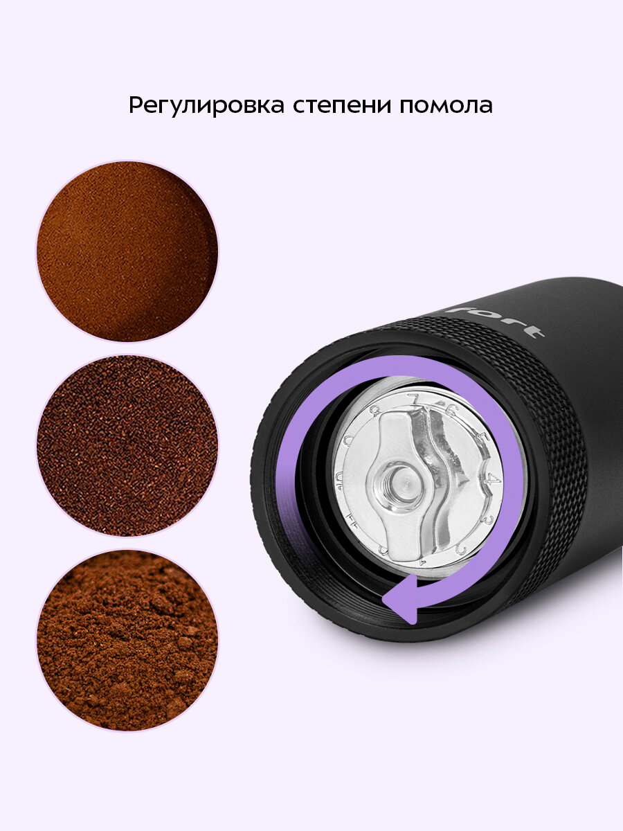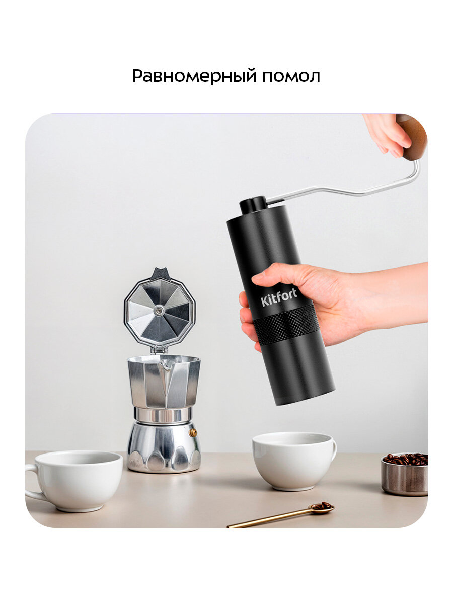 Жерновая кофемолка даёт равномерный помол и позволяет настроить его степень: от мелкого— для турки, до крупного— для френч-пресса. При помоле в жерновой кофемолке кофе не перегревается, как это происходит в роторных кофемолках.