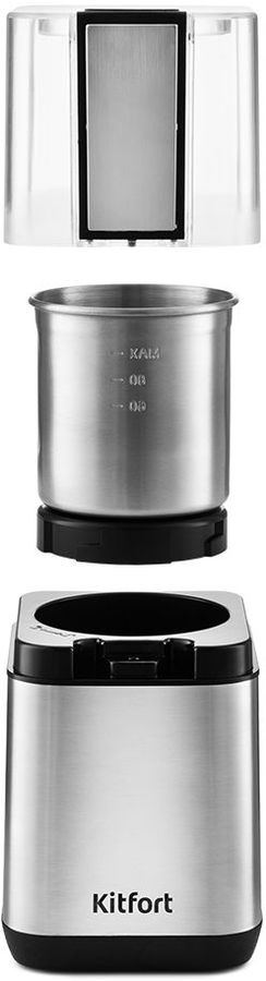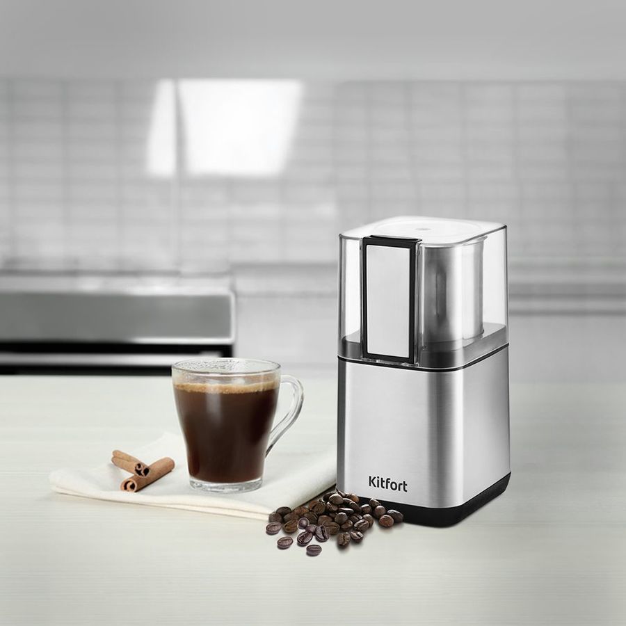 Кофемолка Kitfort КТ-766 предназначена для помола кофейных зёрен и измельчения специй. В чаше установлены ножи с двумя лезвиями из нержавеющей стали. Это несложное в использовании устройство обязательно пригодится любителю кофе!