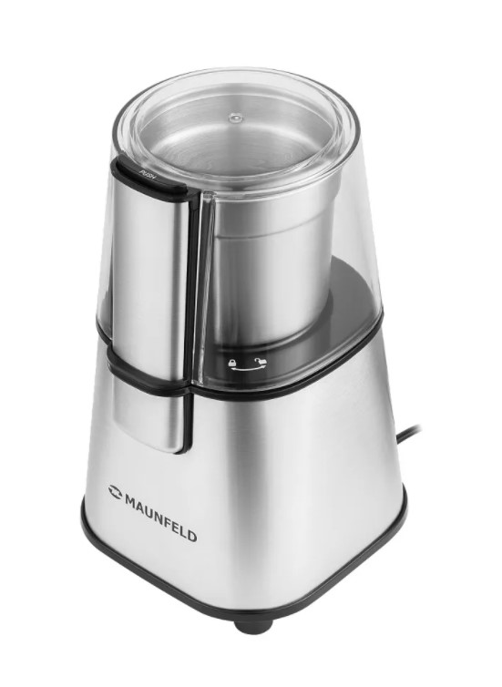 Кофемолка электрическая MAUNFELD MF-521S позволит вам легко и качественно измельчать кофейные зерна, орехи, специи и прочие продукты. Измельчение осуществляется на основе ротационного ножа. Металлическая емкость вмещает до 60 г кофейных зерен. Расположенные на основании корпуса нескользящие ножки гарантируют устойчивое размещение кофемолки MAUNFELD MF-521S на столешнице. Управление выполняется одним нажатием кнопки. Для повышения безопасности в эксплуатации реализована функция защитной блокировки при снятой крышке.