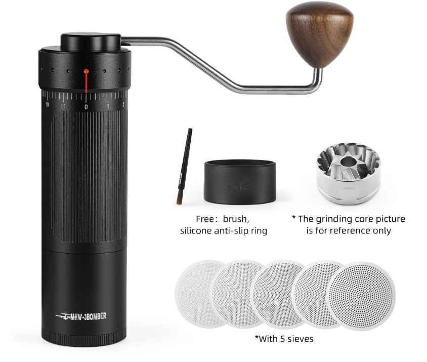 Ручная кофемолка MHW-3BOMBER Blade R3 оснащена семизвёздочными жерновами. Внутренний жернов расположен под углом 45°, наружный — под углом 70°, что обеспечивает ещё более равномерный помол. А цифровое регулировочное кольцо позволяет точно и плавно настраивать степень помола с помощью удобного механизма.