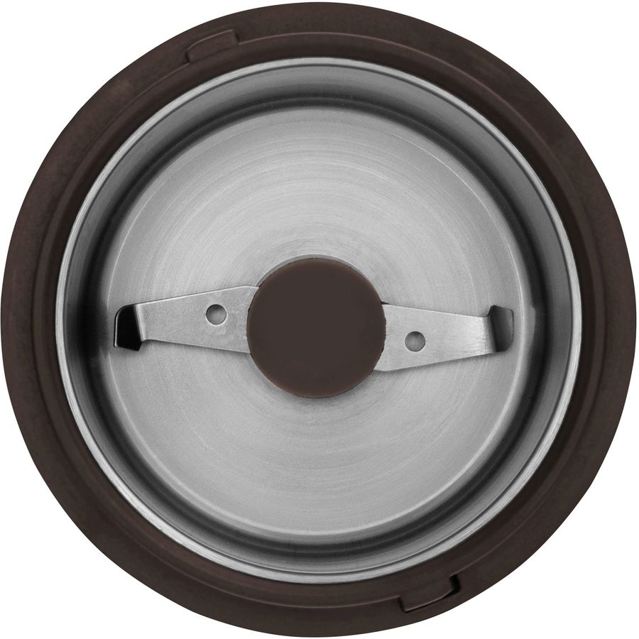 Модель рассчитана на загрузку 50 граммов зерен и оснащена высококачественными ножами из нержавеющей стали. Безопасность работы прибора обеспечивает функция блокировки при снятой крышке. Мощность кофемолки составляет 200 ватт. Имеет импульсный режим работы.