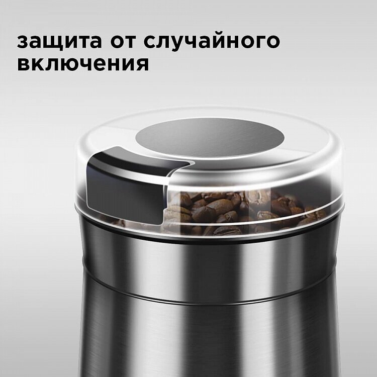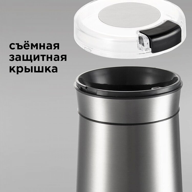 Ножи кофемолки изготовлены из высококачественной нержавеющей стали. Кофемолка за считанные секунды превратит зерна в кофейный порошок крупного, среднего или тонкого помола. За один раз в RED SOLUTION RCG-M1608 можно измельчить до 60 г кофе.