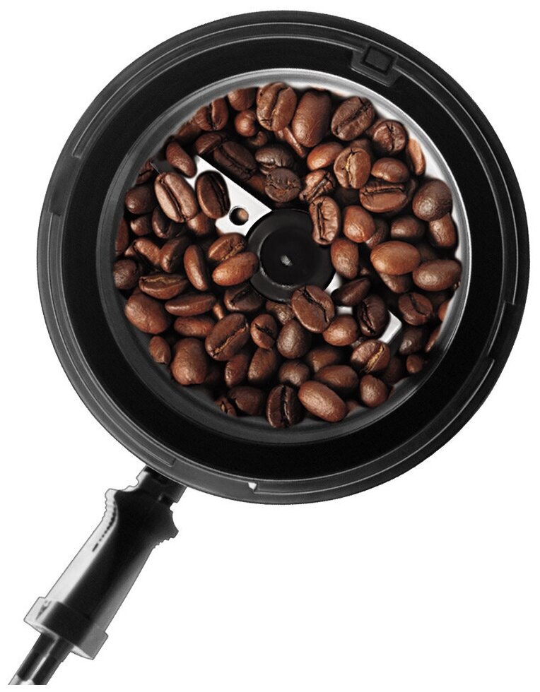 Емкость для кофейных зёрен рассчитана на 70 граммов, чего достаточно для приготовления 5–7 чашек аромат.