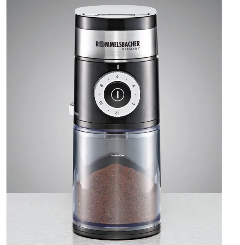 Свежемолотые кофейные зерна обладают более насыщенным ароматом, чем купленные в магазине. Кофемолка Rommelsbacher EKM 200 с системой помола жернова обеспечит желаемый помол кофейных зерен любого вида. Устройство отличается крепким корпусом и стильным внешним видом. Модель вмещает 250 г зерен, чего хватит сразу на несколько порций: от 2 до 12. В данной кофемолке предусмотрены 9 степеней помола. Молотый кофе поступает в специальную съемную емкость, откуда легко извлекается. Готовый порошок получается идеально однородным. Съемный дисковый измельчитель облегчает мытье прибора, а для удобства хранения предусмотрен отсек для намотки сетевого кабеля. Кофемолка Rommelsbacher EKM 200 прекрасно справляется с большими нагрузками, так что вы сможете намолоть столько зерен, сколько вам необходимо. Теперь каждое ваше утро будет начинаться с чашечки бодрящего свежеприготовленного кофе.