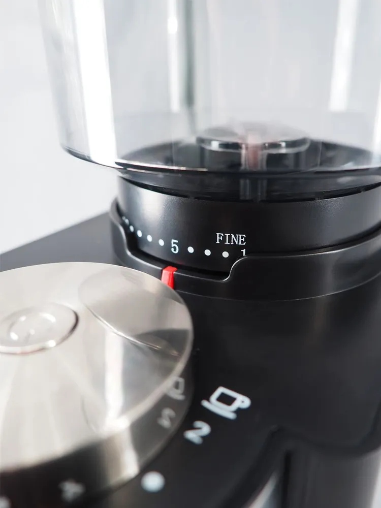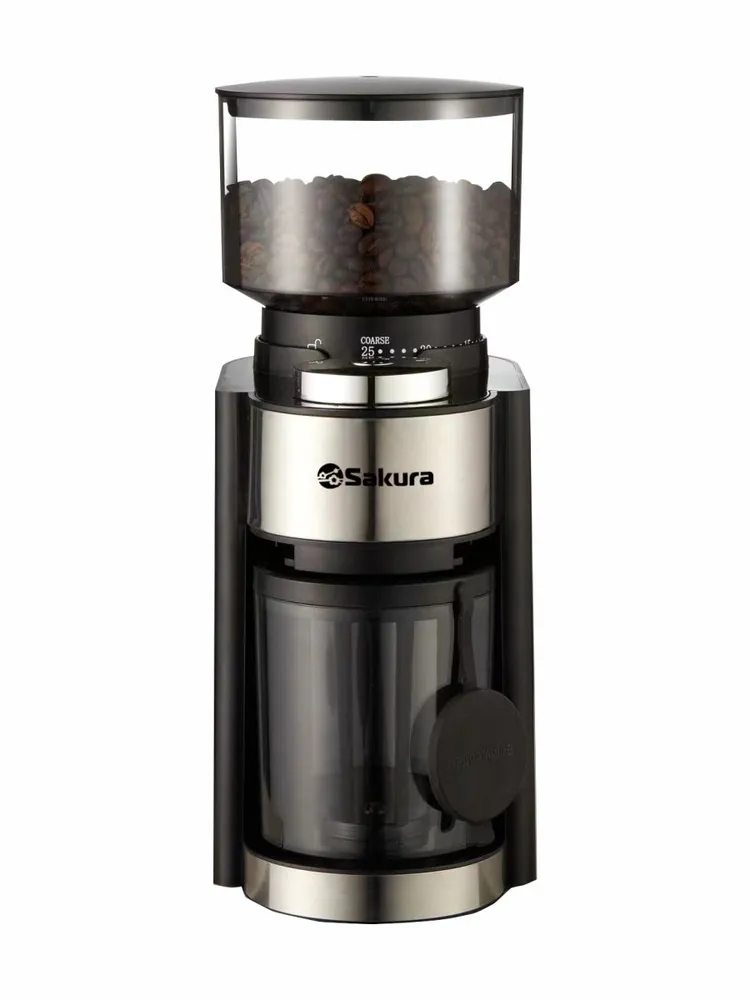 Конструктив кофемолки: Емкость для молотого кофе, Прорезиненные ножки, Съемный резервуар для кофе