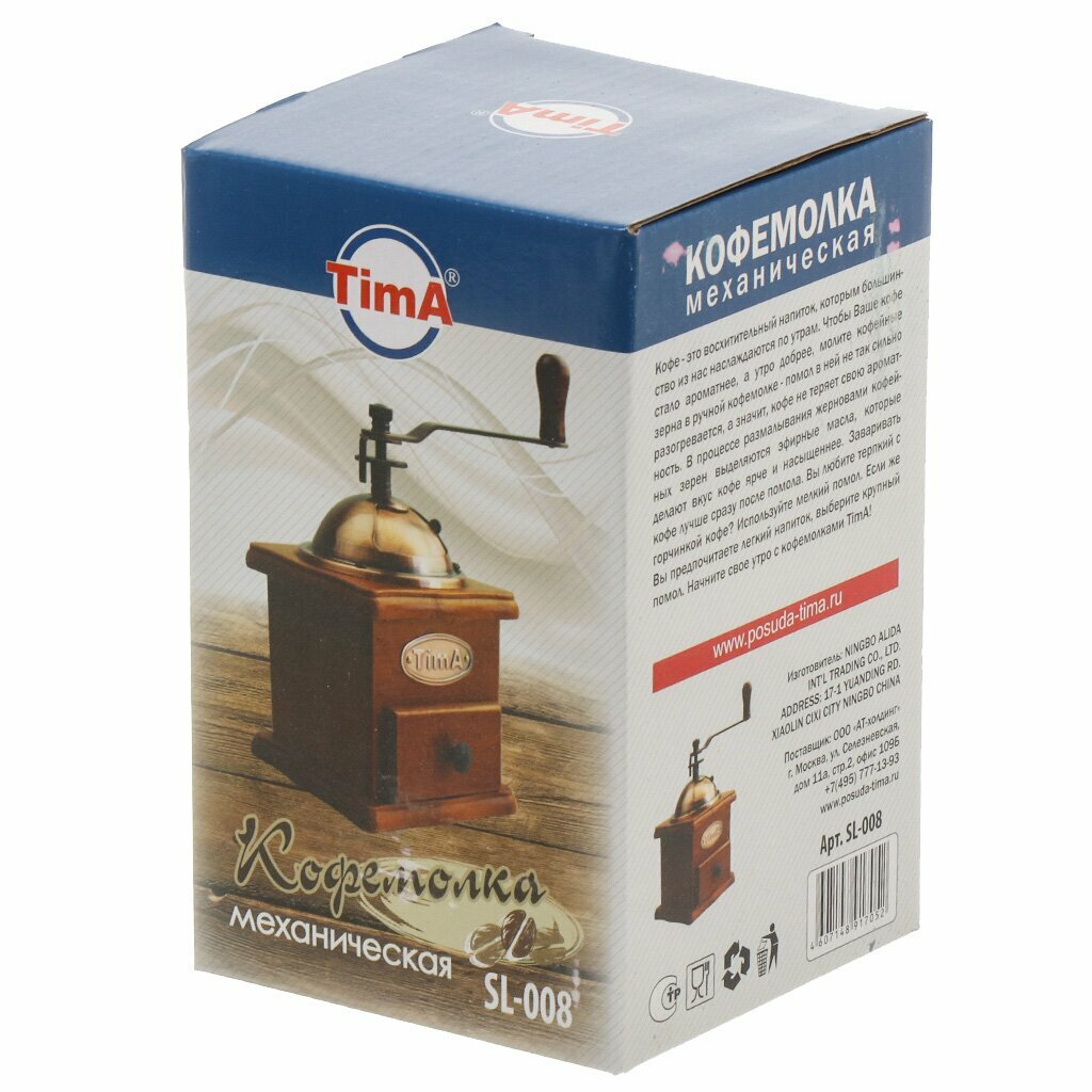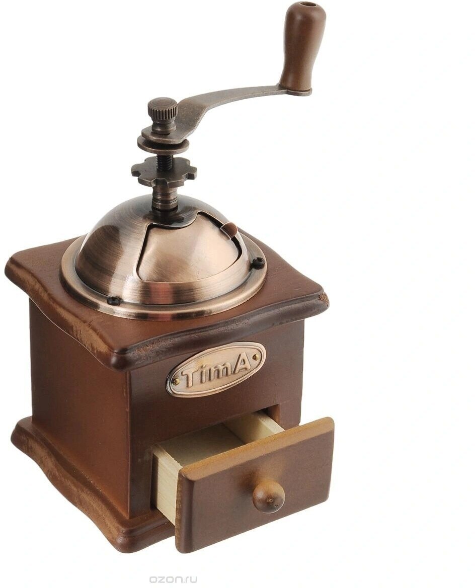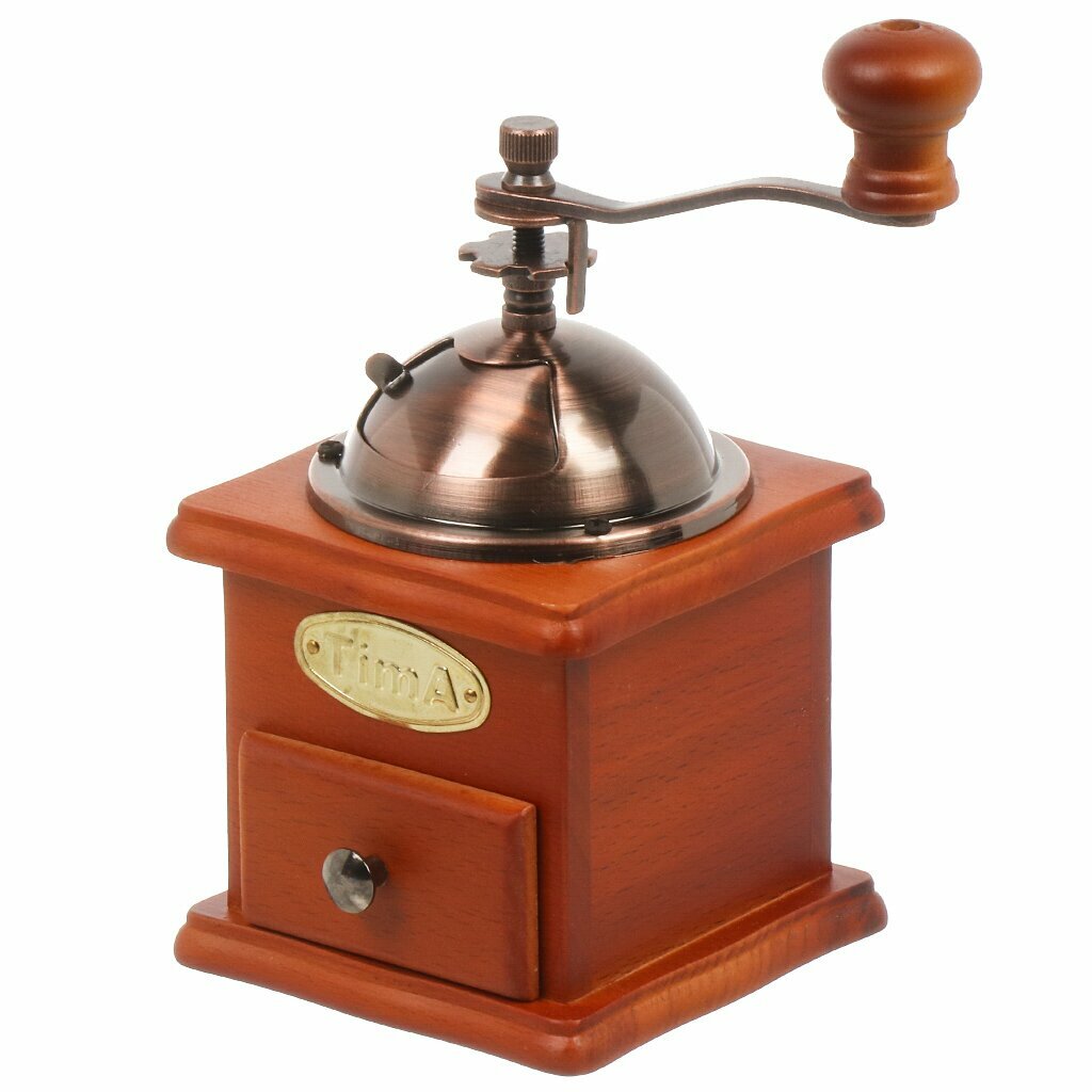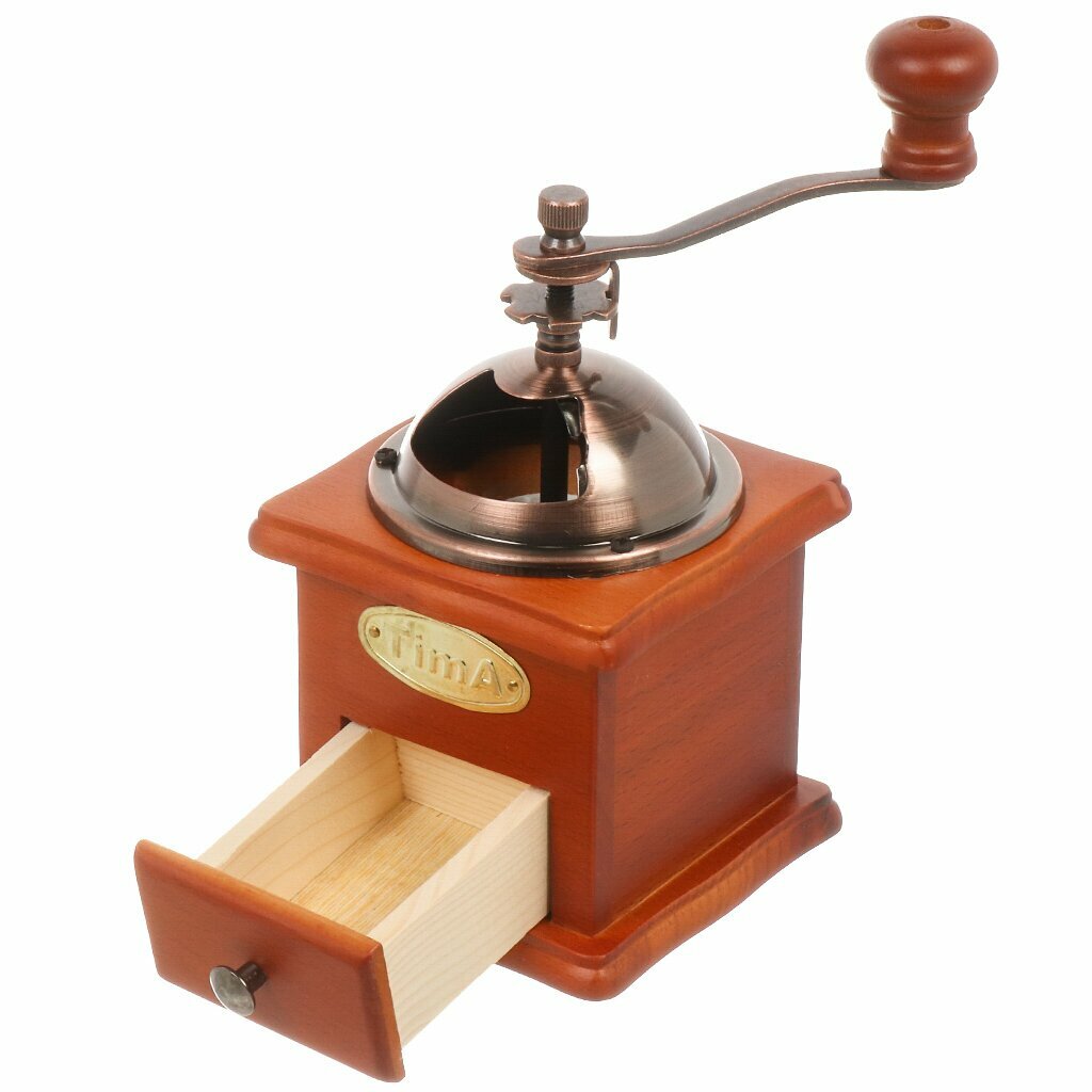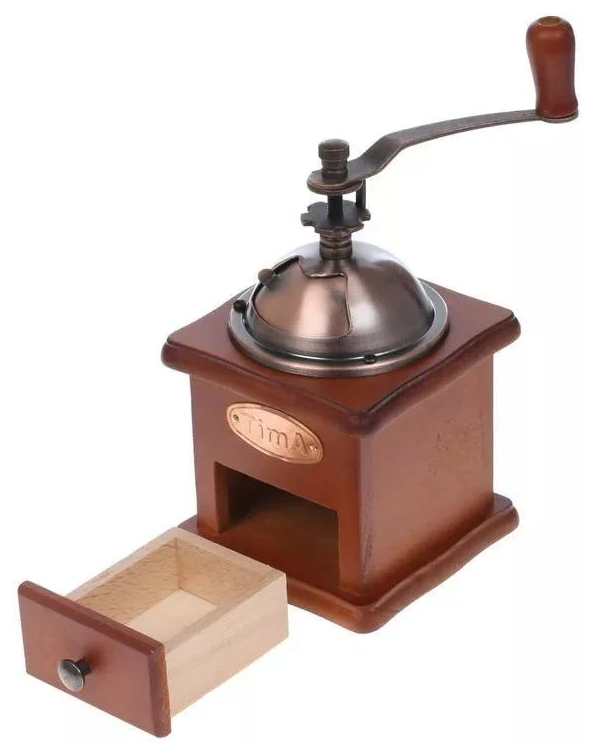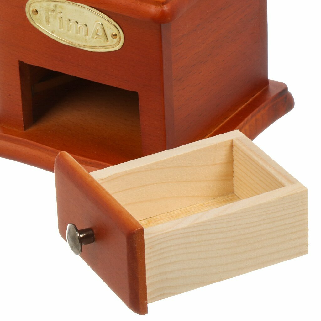 максимальная доза для помола: 35 г; регулировка степени помола: есть; выдвижной деревянный ящик для молотого кофе: есть; размер: 10 x 10 x 16 см