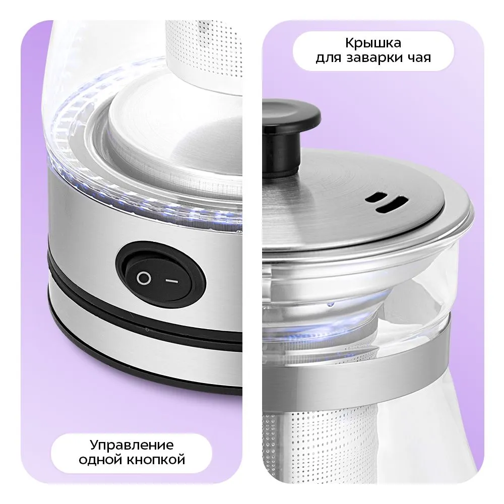 Конструкция КТ-6767 создана для заботы о вашем комфорте и скорости приготовления напитков. Включение и выключение осуществляются одной кнопкой, а для заваривания чая воспользуйтесь крышкой из комплекта.