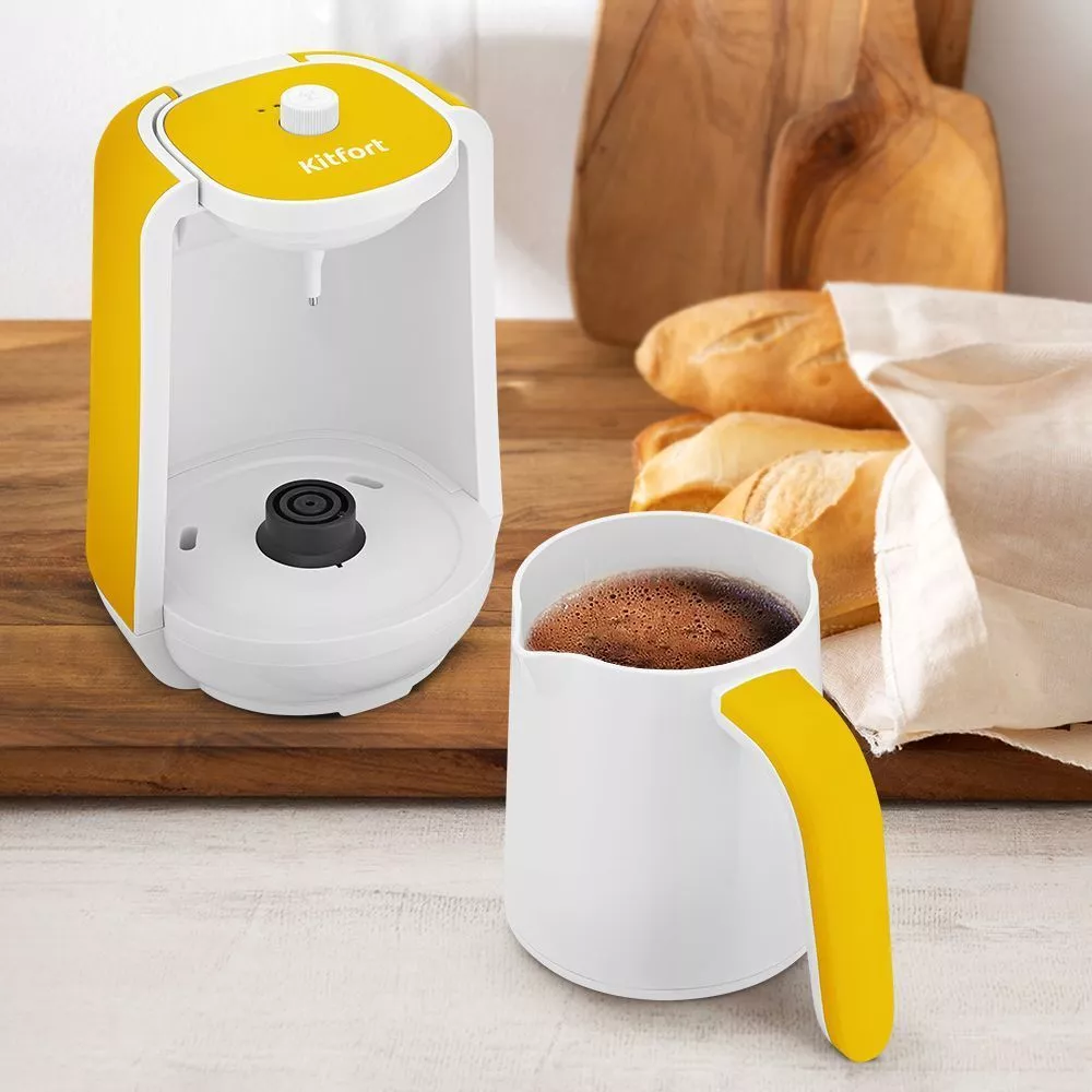 Электрическая турка КТ-7135 варит кофе по-турецки. С ней вы сможете быстро и легко сварить натуральный кофе на 4 чашки по 60 мл.