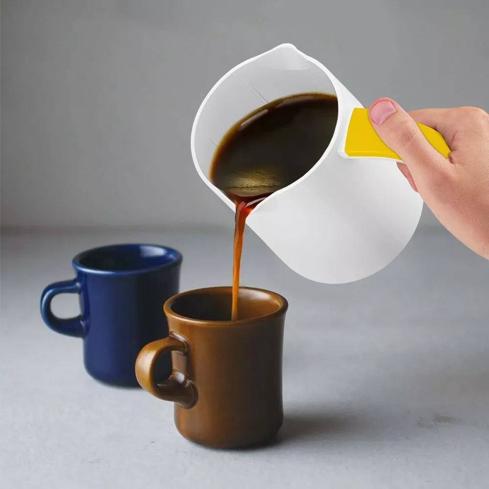 Ручка турки пластиковая, не нагревается и удобно лежит в руке. У турки 2 носика, это сделано специально, чтобы вам было удобно наливать кофе в чашку вне зависимости от того, правша вы или левша.
