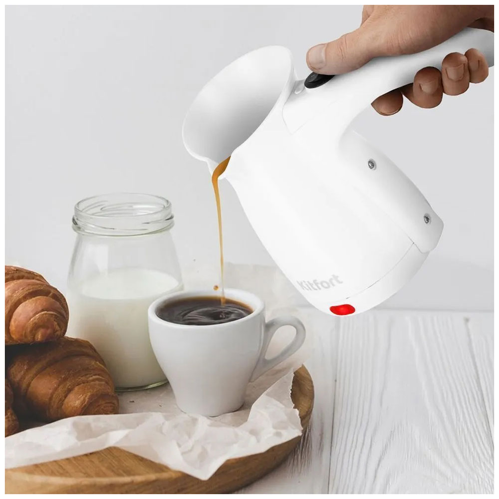 Электрическая турка КТ-7450 варит кофе по-турецки. С ней вы сможете быстро и легко сварить натуральный кофе на 8 чашек по 60 мл. Устройство состоит из литой конструкции турки и нагревательного элемента.