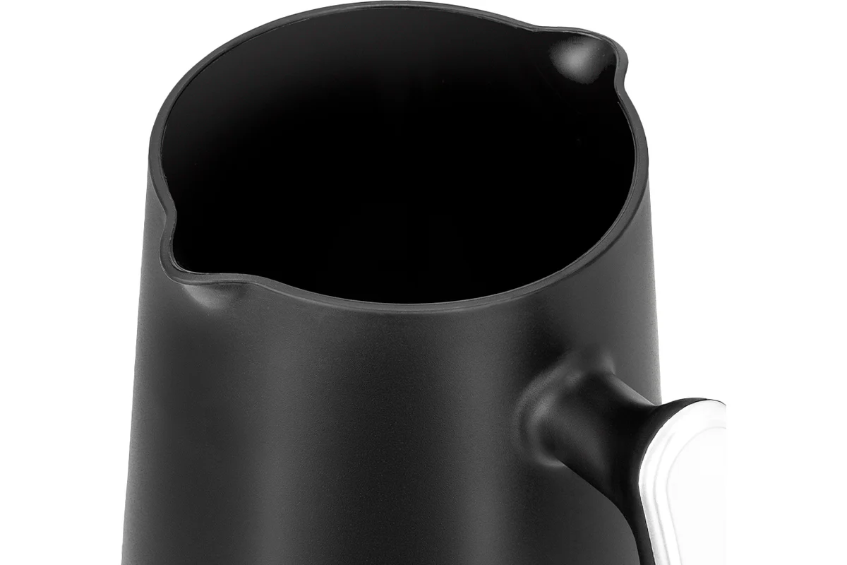 Ручка турки пластиковая, не нагревается и удобно лежит в руке. У турки 2 носика, это сделано специально, чтобы вам было удобно наливать кофе в чашку вне зависимости от того, правша вы или левша.