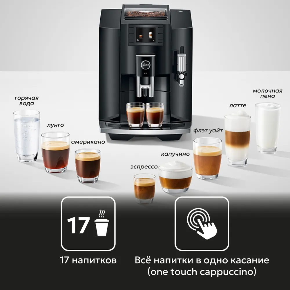 Виды напитков: Американо, Двойной эспрессо, Латте макиато, Молочная пена, Флэт Уайт, Капучино, Эспрессо, Эспрессо лунго, Эспрессо макиато