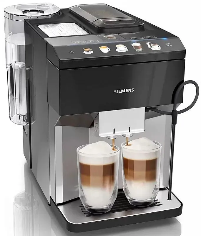 Кофемашина Siemens TP507R04 — автоматическая модель, которая благодаря запатентованной системе заваривания AromaDoubleShot позволит готовить крепкий кофе без горечи. Нужный напиток легко выбрать на TFT дисплее coffeeSelect. Функция oneTouch DoubleCup дает возможность одновременно приготовить две чашки напитка.