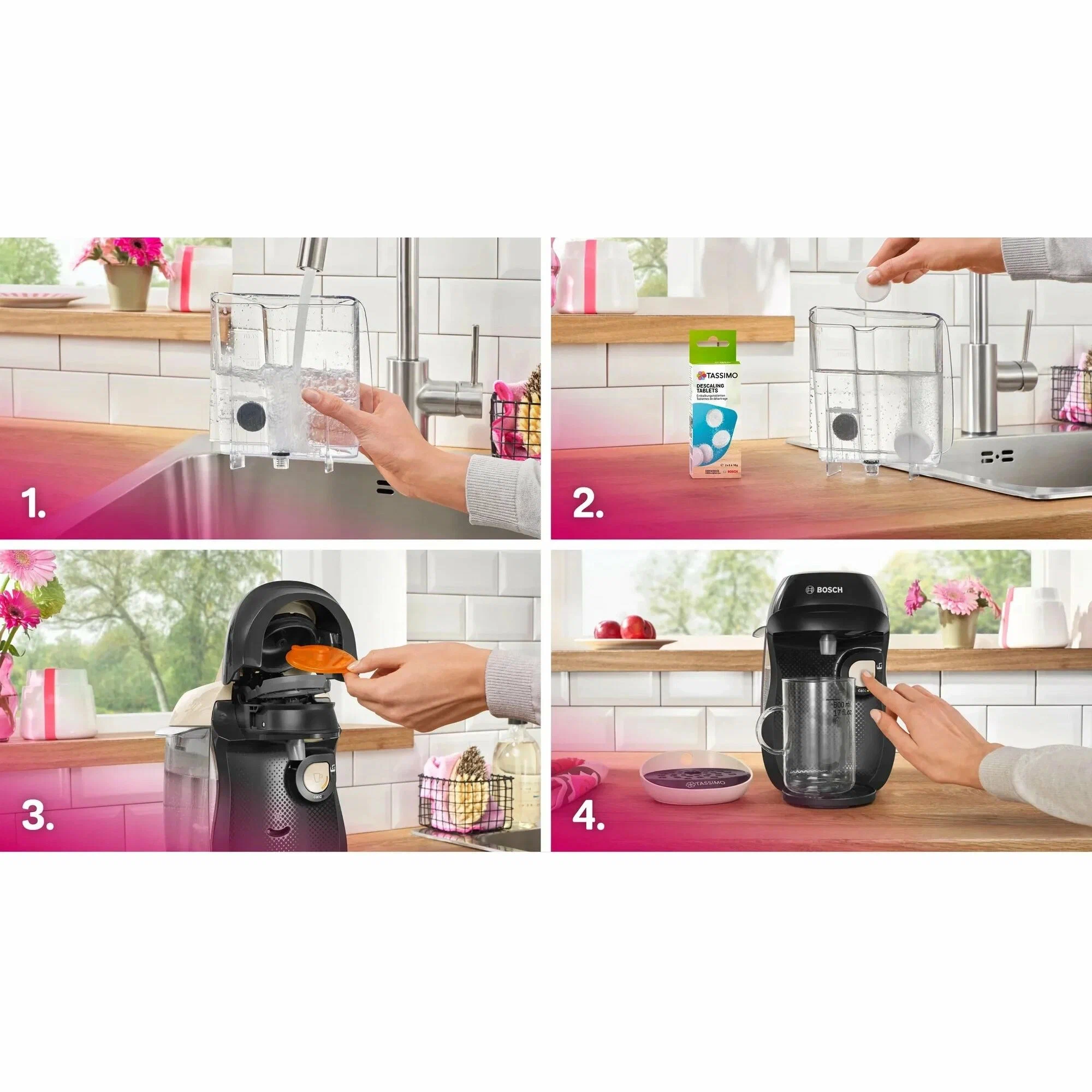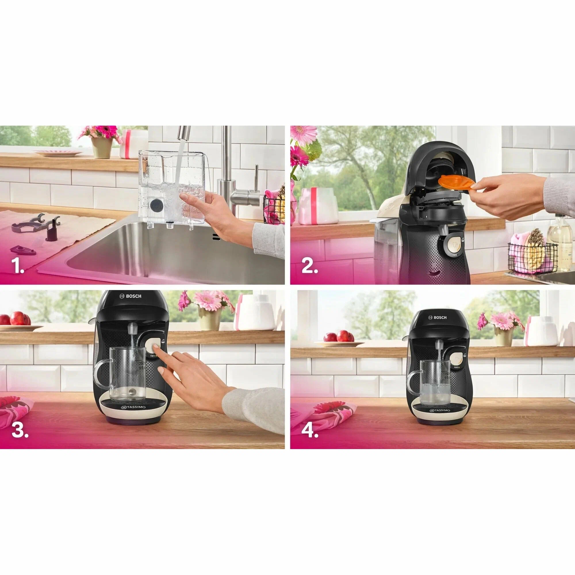 прибор для приготовления порционных горячих напитков(различных видов кофе, чая и горячего шоколада) с использованием капсул (Т-дисков); интеллектуальная система считывания штрих-кода (распознавание типа напитка и технологии для его приготовления); режим ожидания; съемная регулируемая по высоте подставка для чашек; индикатор декальцинации