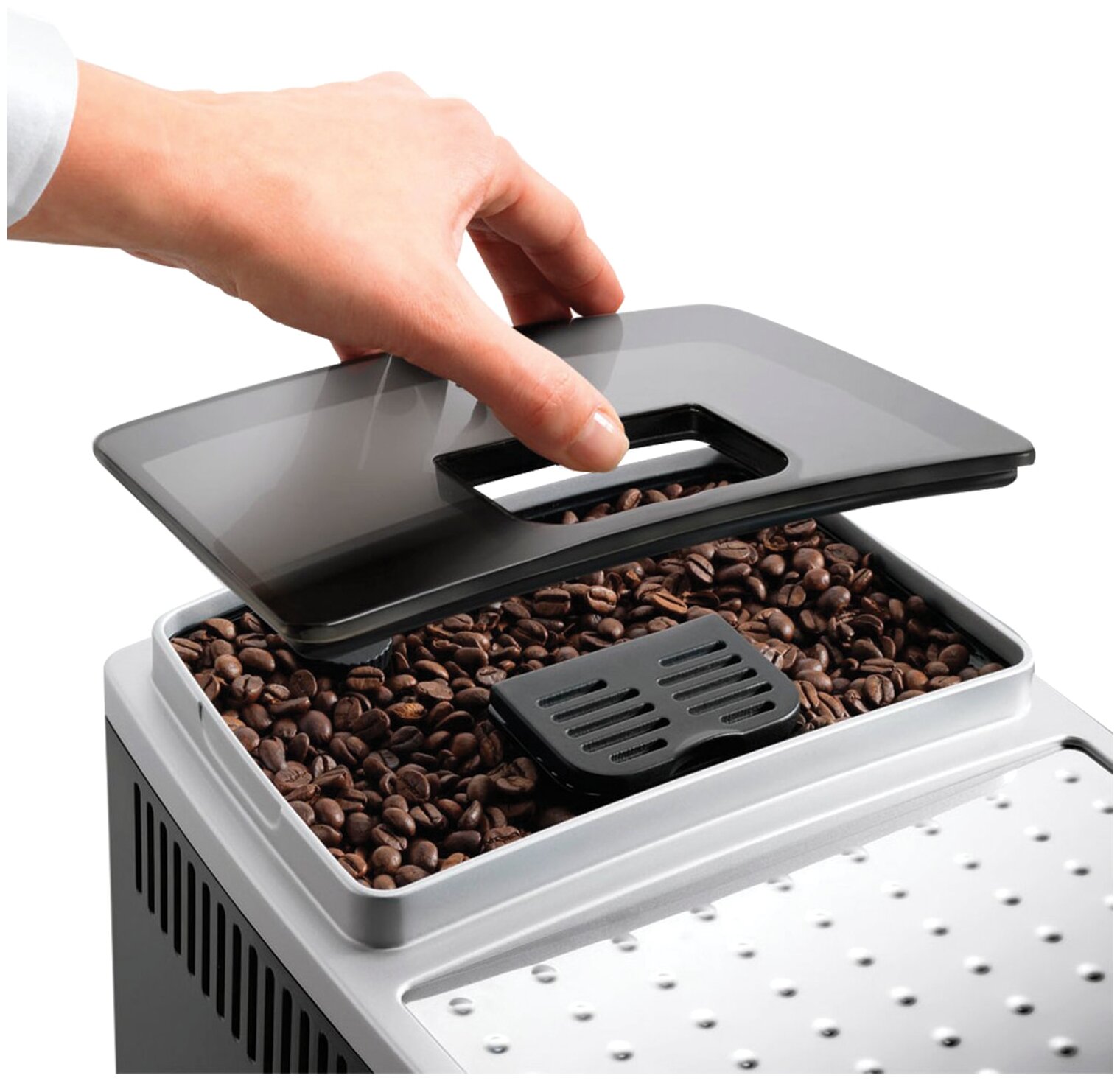 вместимость контейнера для кофейной гущи 14 чашек; стальная жерновая конусная кофемолка; решетку поддона для капель можно мыть в посудомоечной машине; в комплекте: мензурка-дозатор, флакон с декальцинатором
