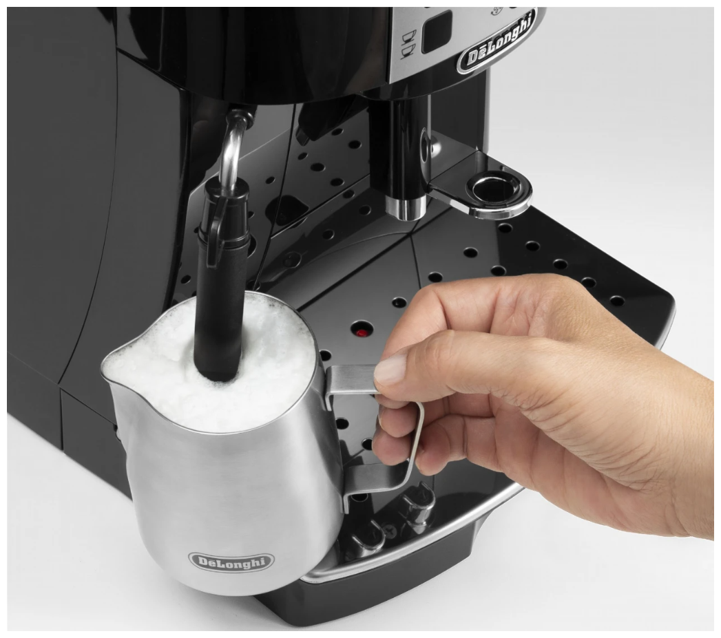 Кофемашина DeLonghi Magnifica S ECAM 22.115.B оснащена современной системой капучино, позволяющей приготовить кофе с густой молочной пенкой сливочного цвета. Насадка для вспенивания молока сделает вас похожим на бариста, откроет для вас богатство мира сортов кофе, независимо от того, предпочитаете ли вы пышный капучино, эффектный латте макиато или насыщенный эспрессо макиато, смягченный лишь облаком легкой молочной пены.
