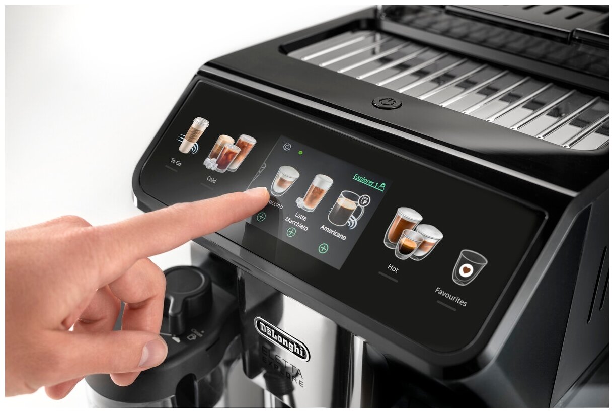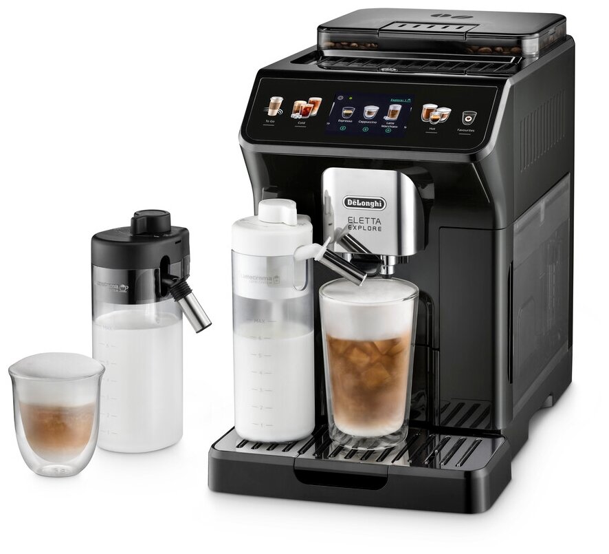 комплект: контейнер для молока (latte crema hot, latte crema cool) ,фильтр воды, чашка To Go, мерная ложка, силиконовая форма для льда, средство для удаления накипи EcoDecalk, чистящая щеточка, инструкция