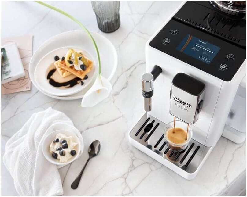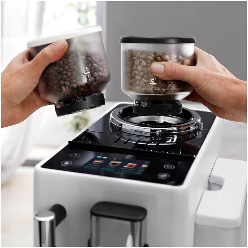 Погрузитесь в мир кофе вместе с De'Longhi Rivelia. Исследуйте бесконечное разнообразие зерен с помощью системы Bean Switch, наслаждайтесь захватывающими впечатлениями на 3,5-дюймовом цветном сенсорном экране с богатой анимацией и индивидуальными программами приготовления кофе. Создайте кремовую пену с помощью ручного капучинатора для молока в компактной машине, которая адаптируется к вашему стилю.