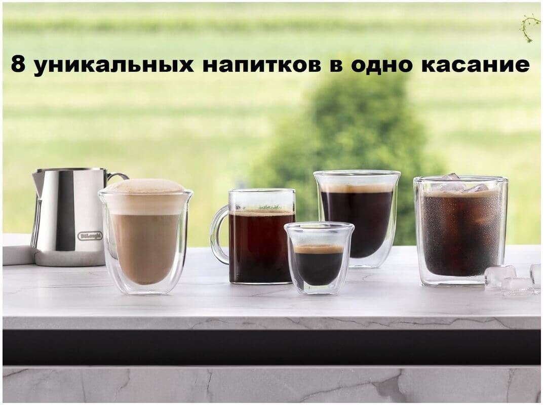 Интуитивно понятный цветной экран с диагональю 3,5 дюйма, позволяющий выбрать 8 напитков одним касанием. Традиционный вспениватель молока - Благодаря традиционному капучинатору с насадкой Панарело приготовьте молочные напитки со сливочной пеной вручную, как настоящий бариста. Или используйте его для получения горячей воды для заваривания чая или настоев. Изящный, компактный дизайн с мягкими углами в Арктическо белом цвете.