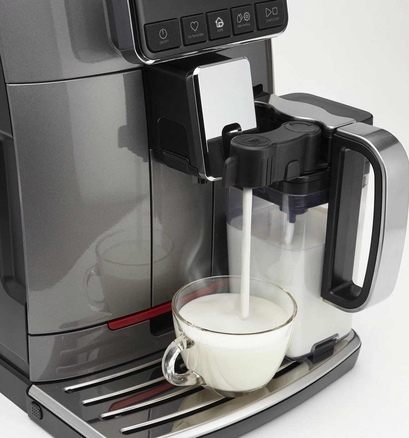 кофе на порцию 7-12 гр; счетчик порций; контейнер отработанного кофе на 15 порций; 5 степеней помола; энергосберегающий режим; регулируемый по высоте диспенсер; автоматический цикл очистки при старте и выключении; 4 персональных профиля любимых кофейных напитков; автоматическая очистка от молока; контейнер молока: съемный графин 500 мл