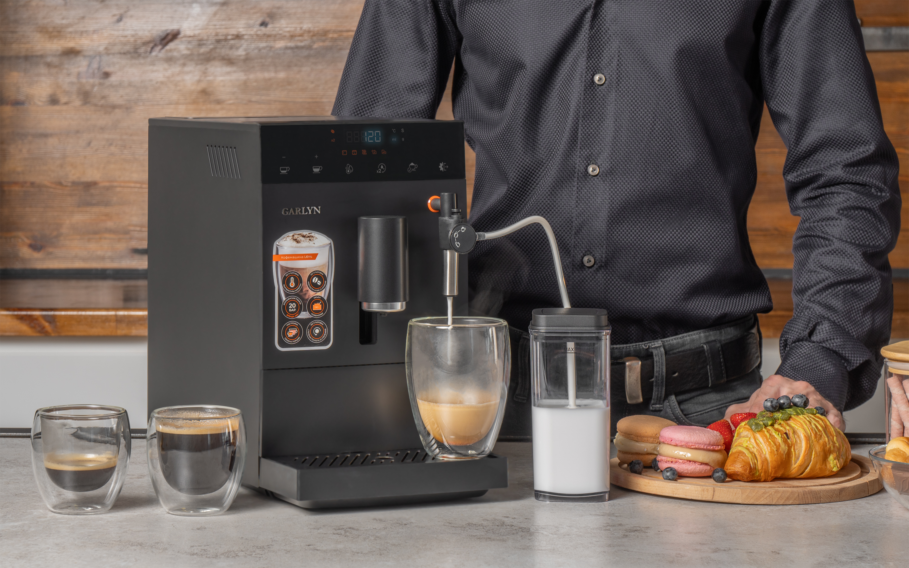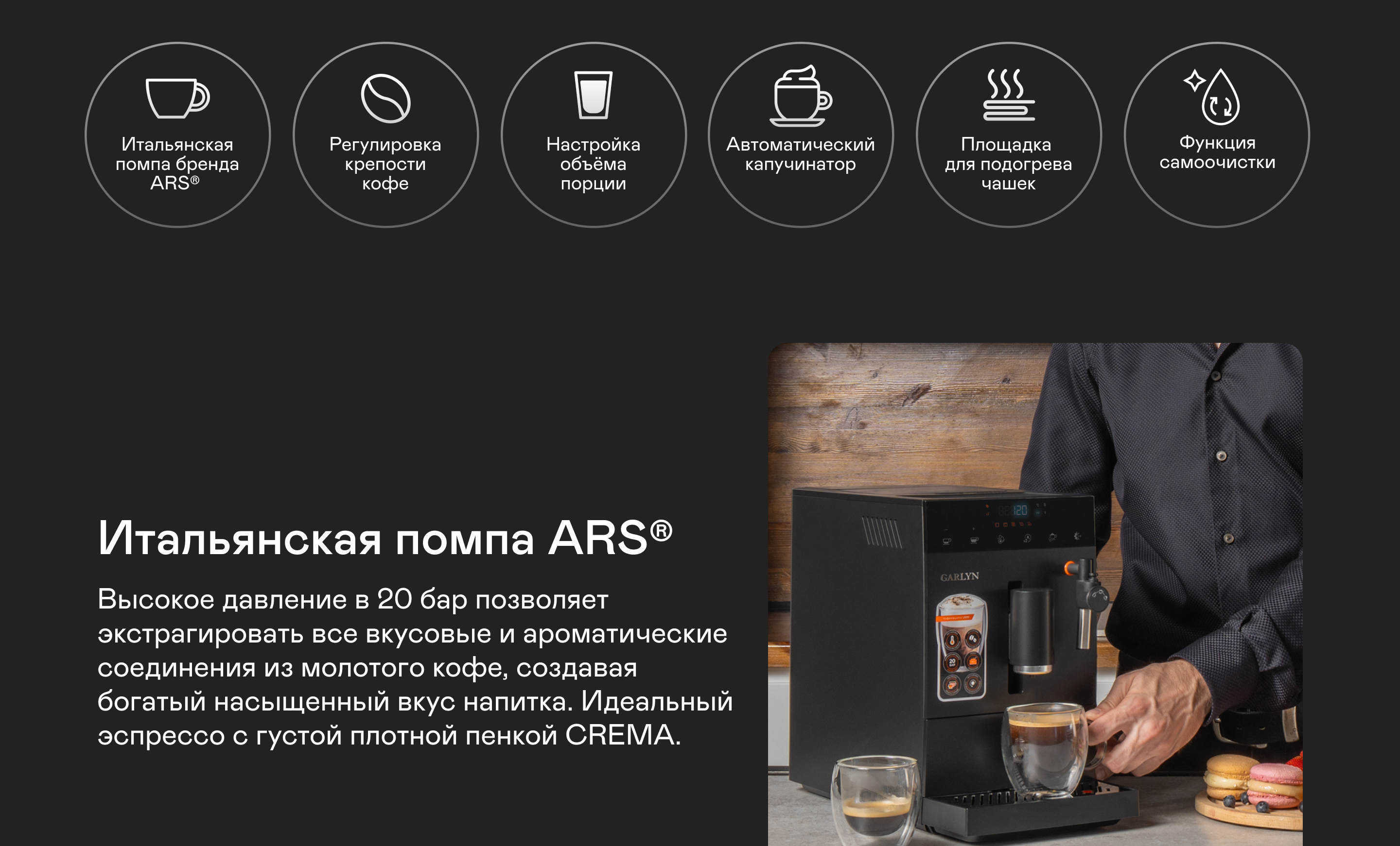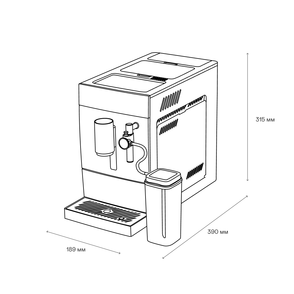 Кофемашина - 1 шт.; Резервуар для молока - 1 шт.; Крышка кофемолки с уплотнителем - 1 шт.; Соединительная гибкая трубочка для подачи молока - 1 шт.; Устройство вспенивания молока - 1 шт.; Щёточка для очистки - 1 шт.; Руководство пользователя - 1 шт.; Краткая инструкция пользователя - 1 шт.
