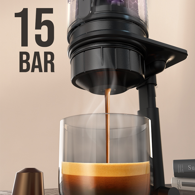 Портативная кофемашина Hibrew H4A (AC-505K) обеспечивает давление 15 бар, что позволяет быстро и качественно приготовить крепкий напиток из натуральных молотых зерен. Модель совместима с капсулами Nespresso и Dolce Gusto. С помощью устройства можно делать бодрящий эспрессо и классический американо. Ручной капучинатор помогает взбить молоко до устойчивой пенки, которая придаст напитку нежный молочный вкус. Для управления используются механические переключатели. Встроенный индикатор оповещает о включении и готовности к работе.